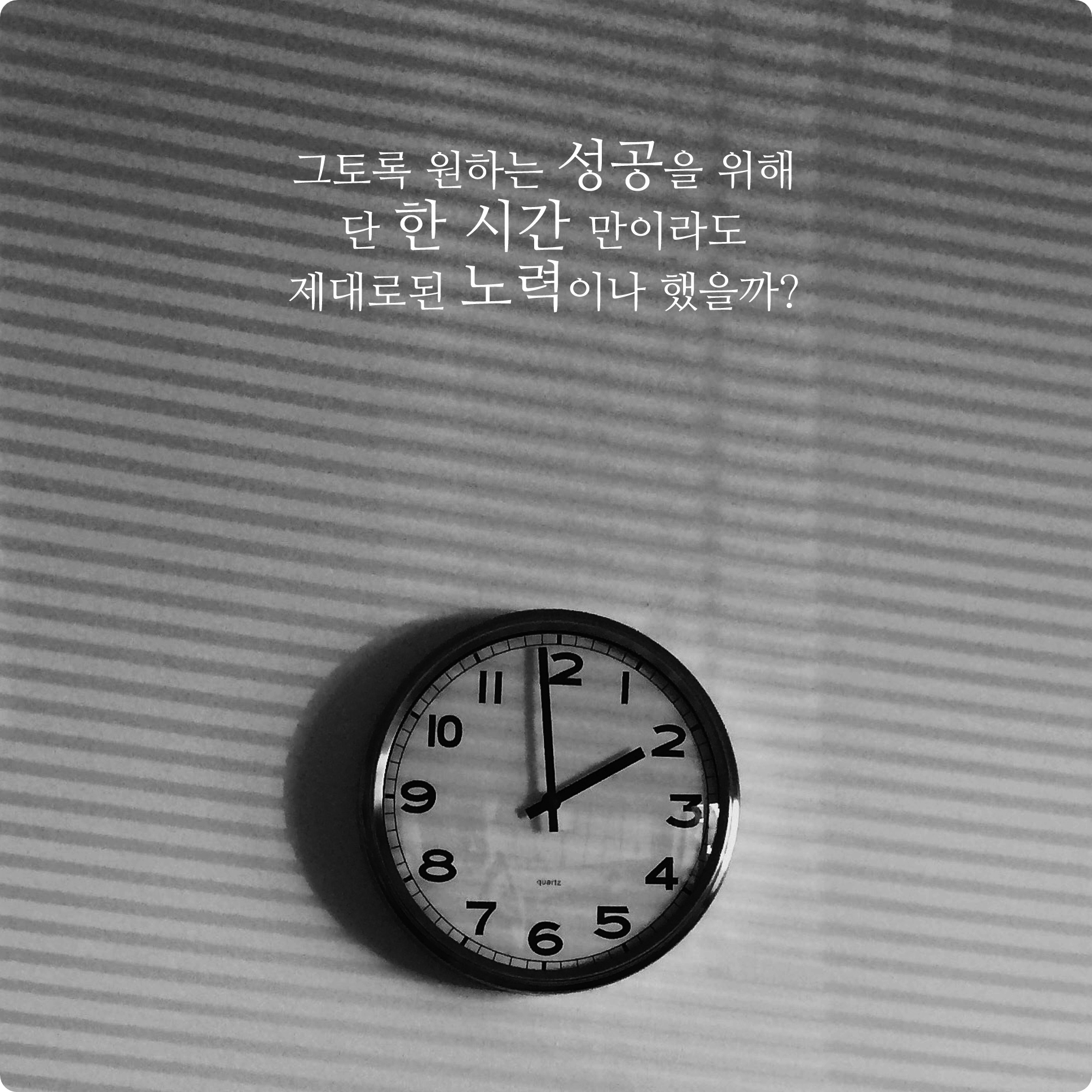 제가 전하고 싶은 메세지나 글귀들을 보면 가끔은 희망적이기도 하지만 좀 더 냉정하고 강한 느낌의 글들이 많은 편인데요. 조금 강하게 표현한 성공글귀이기는 하지만 그만큼 많은 분들에게 자극제가 되고 마음적으로 조금이나마 느낄 수 있는 그런 메세지로 다가갔으면 해요. 난 제대로된 노력을 했다고 볼 수 있을까? 이런 솔직한 물음에 냉정하게 얘기하자면 단 한시간도 제대로된 노력을 했다고 보기는 어렵지 않을까요? 그러면서도 너무나 성공을 갈망하고 있으니 참 우수운 일이지요.