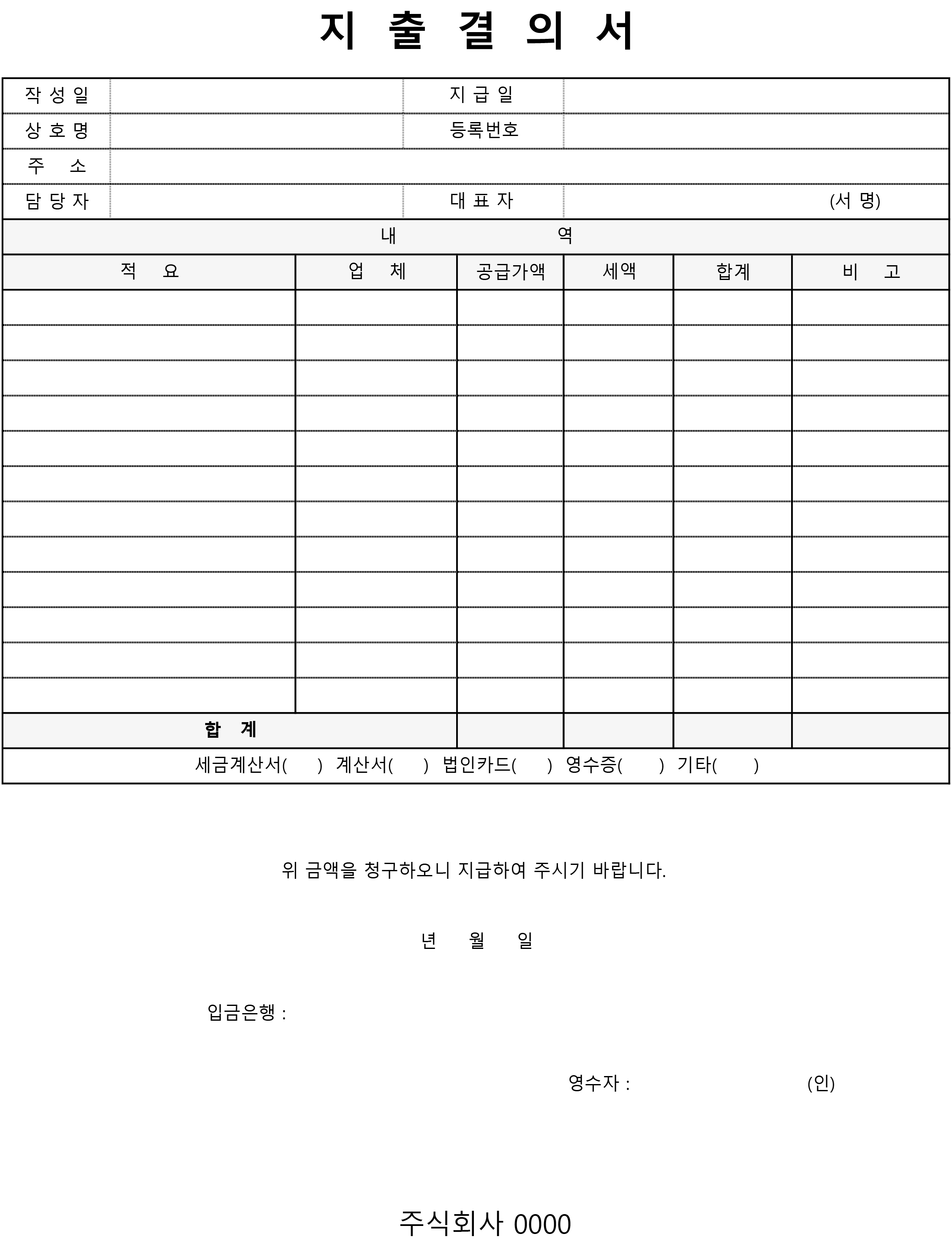 지출결의서란 영어로 expense report이며, 한 회사나 단체에서 지출과 같은 비용이 생겼을 때 향후 지불해야 할 내역에 대해서 검토하고 승인을 요청하는 내부문서 중 하나입니다. 일반적으로 회사 내에서 결재를 받기 위한 용도로 가장 많이 활용이 되고 있으며, 지출의 현황, 필요한 품목은 무엇인지, 거래처는 어디인지 등의 내용이 기재된 문서를 지출결의서 양식이라고 합니다.