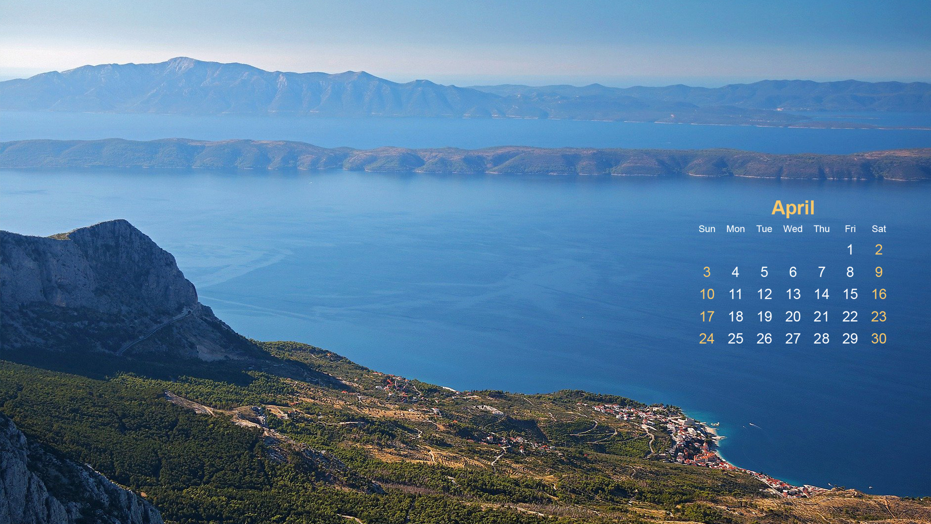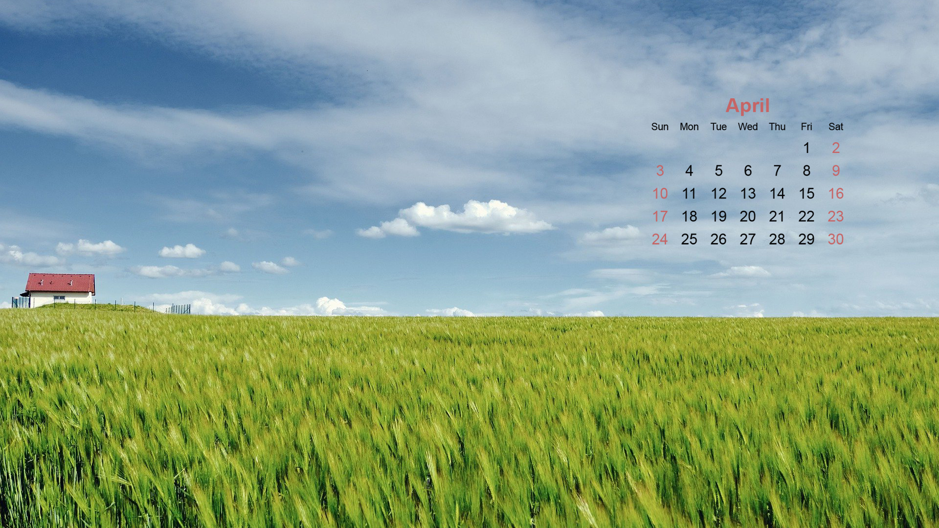 노란 꽃의 동산과 푸른 하늘의 풍경이 일품인 4월 달력 배경화면입니다.