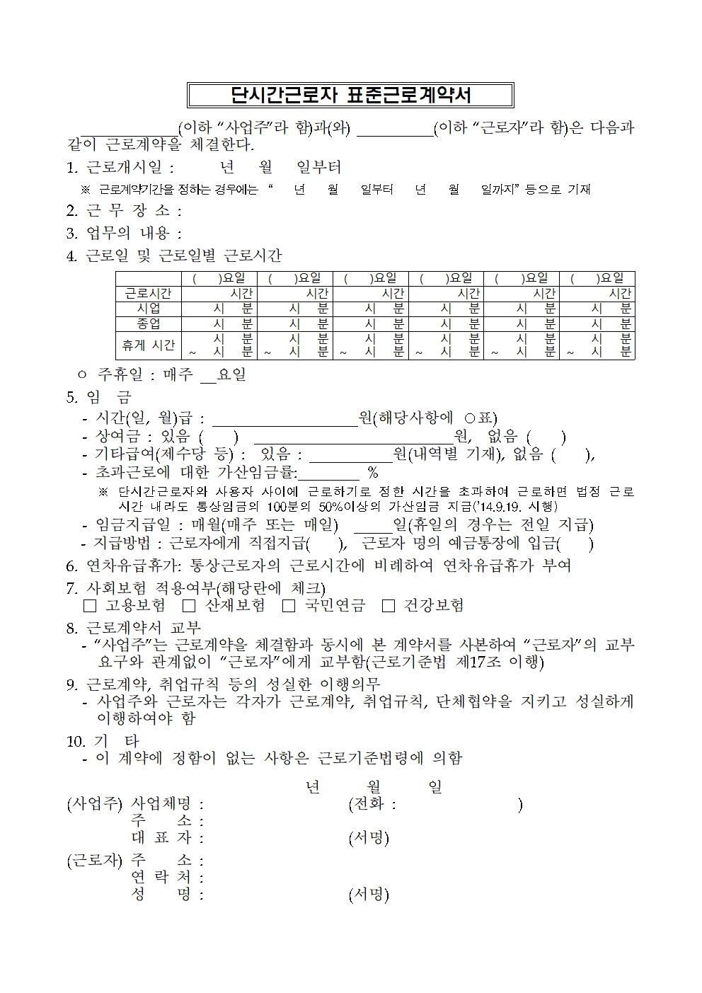 알바 아르바이트 일용직 고용노동부 근로계약서 양식 서식 모음