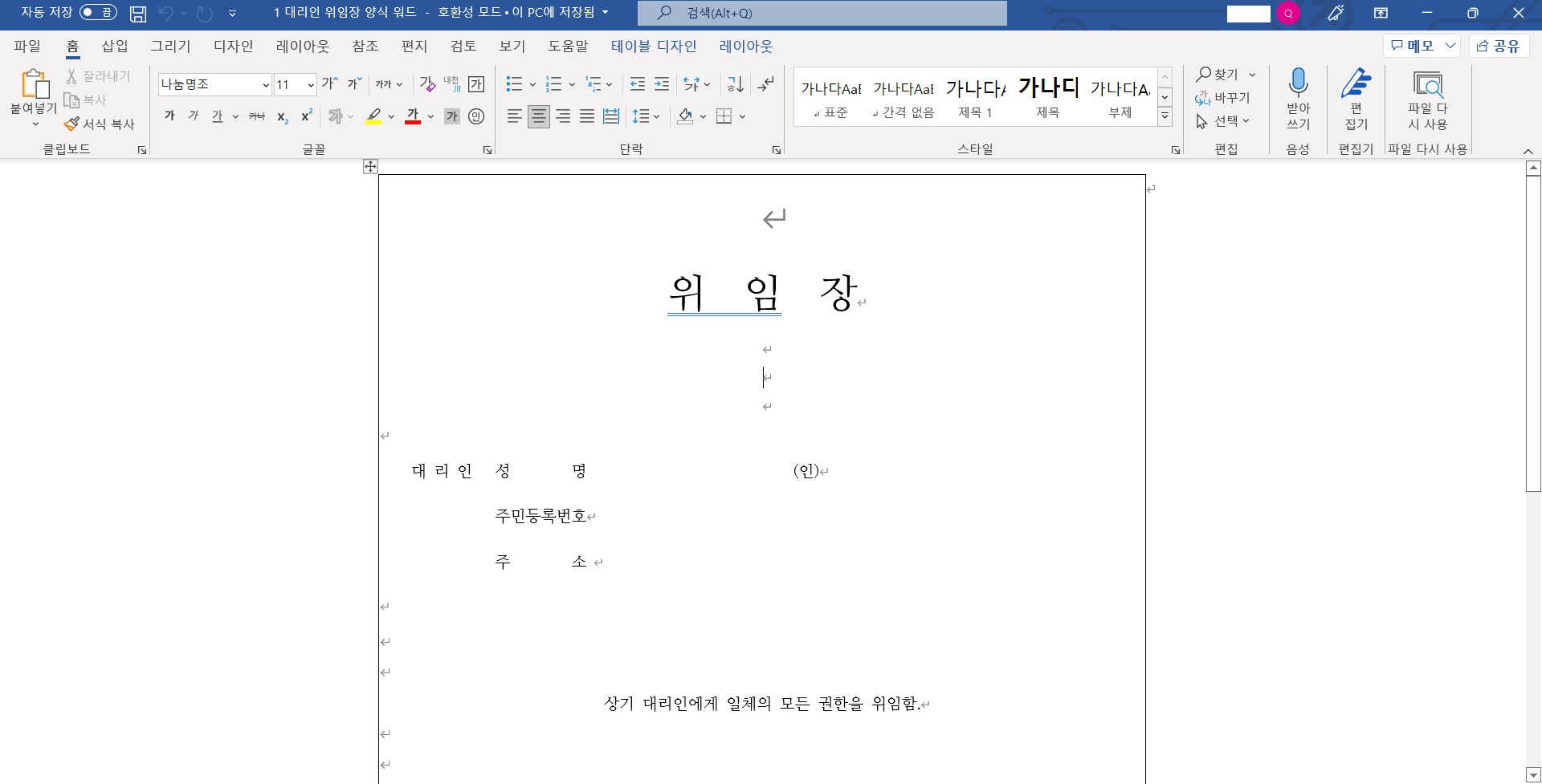 해당 문서를 한글 hwp 파일로 저장하고자 한다면 위의 '위임장 양식 hwp 서식 무료 다운로드'편 게시글을 방문하시면 됩니다.