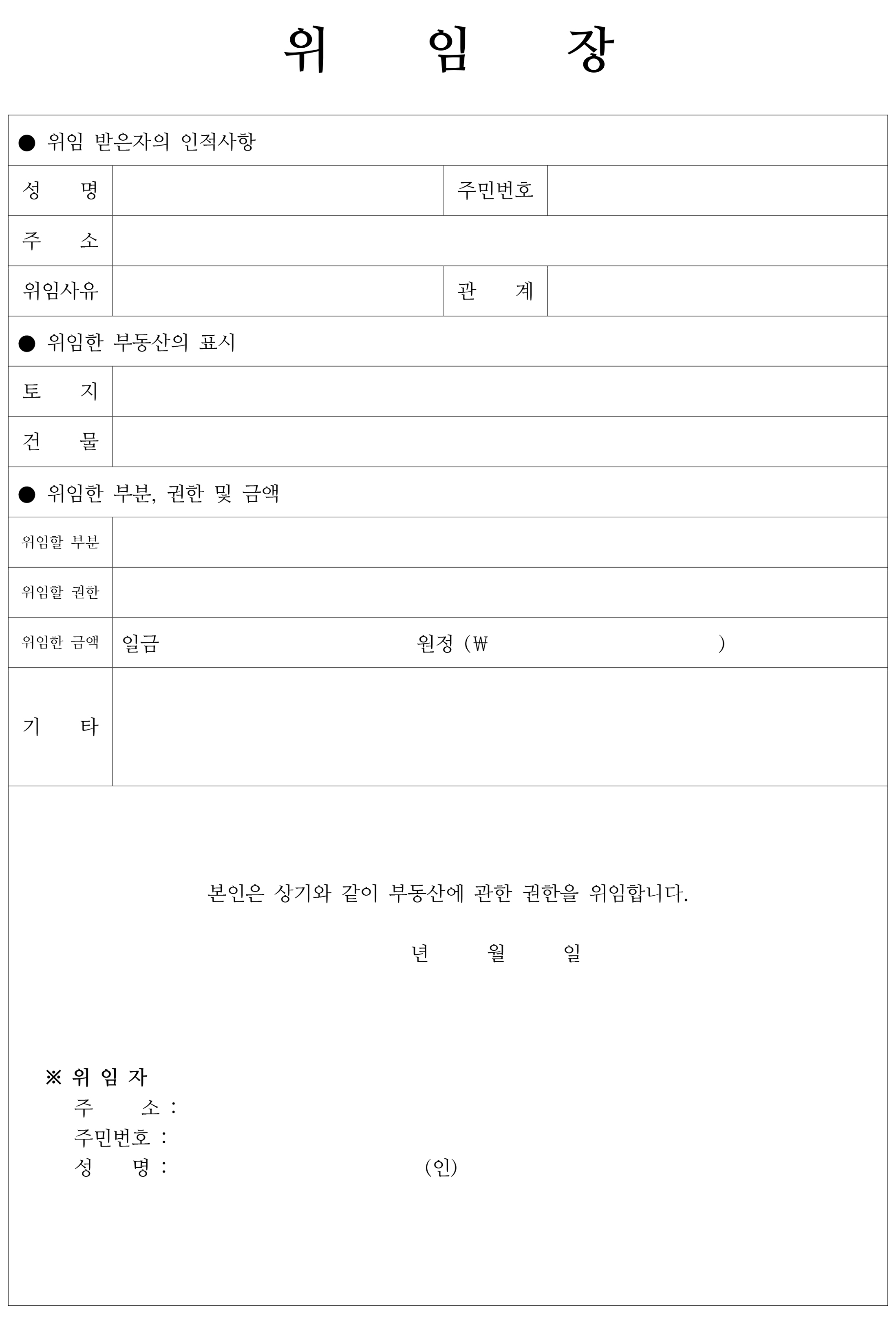 부동산 위임장 양식 무료 다운로드