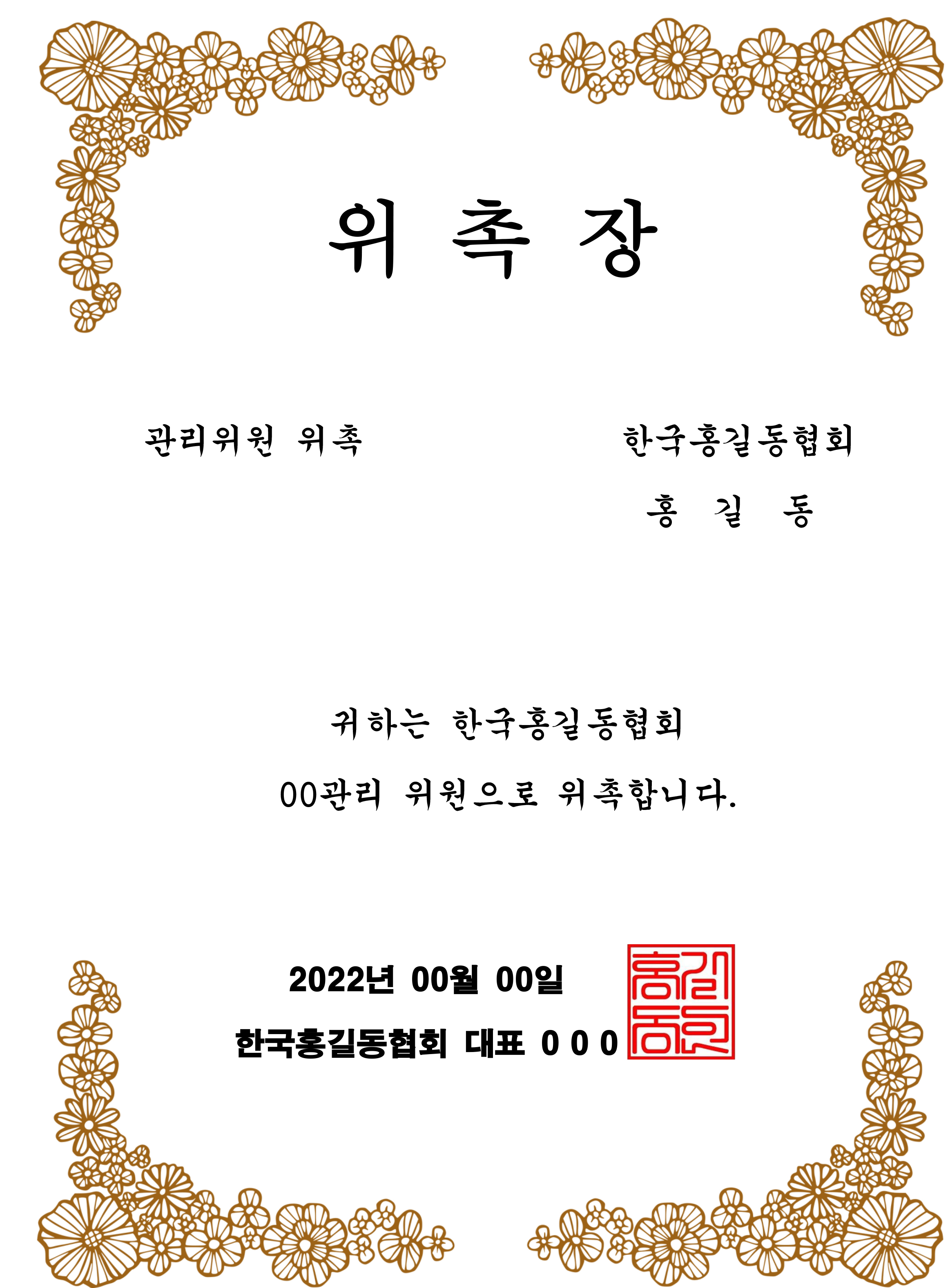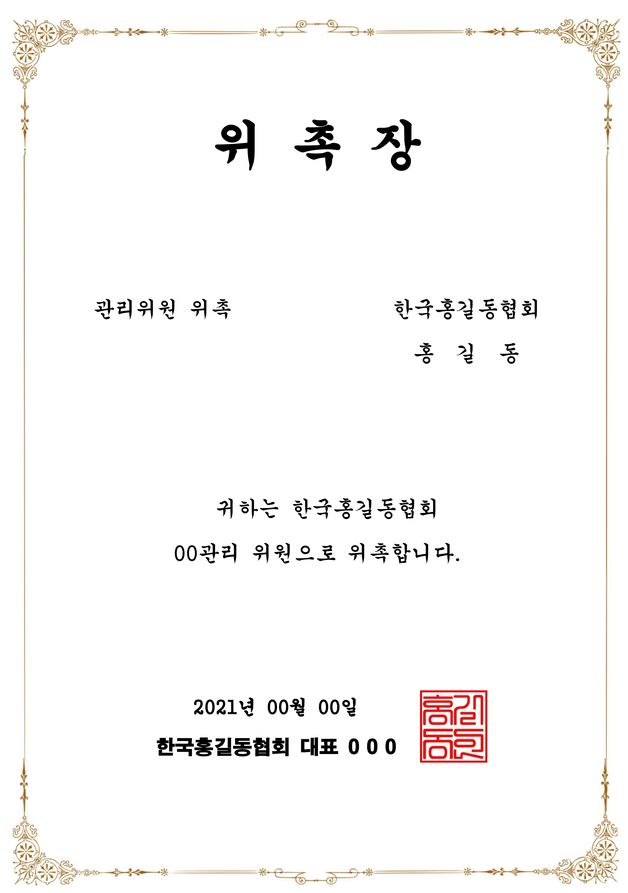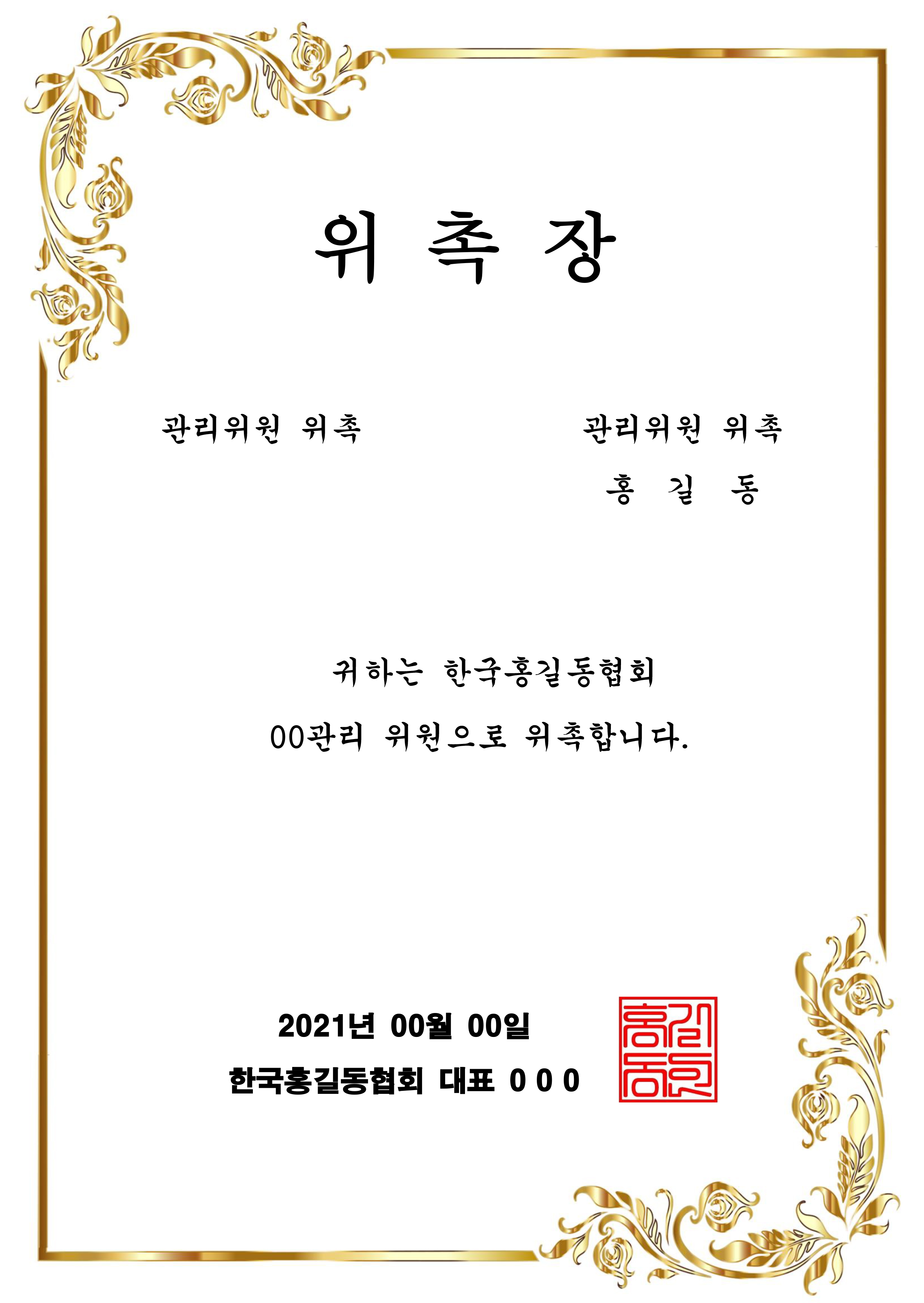 귀하는 한국홍길동협회 관리 위원으로 위촉합니다.