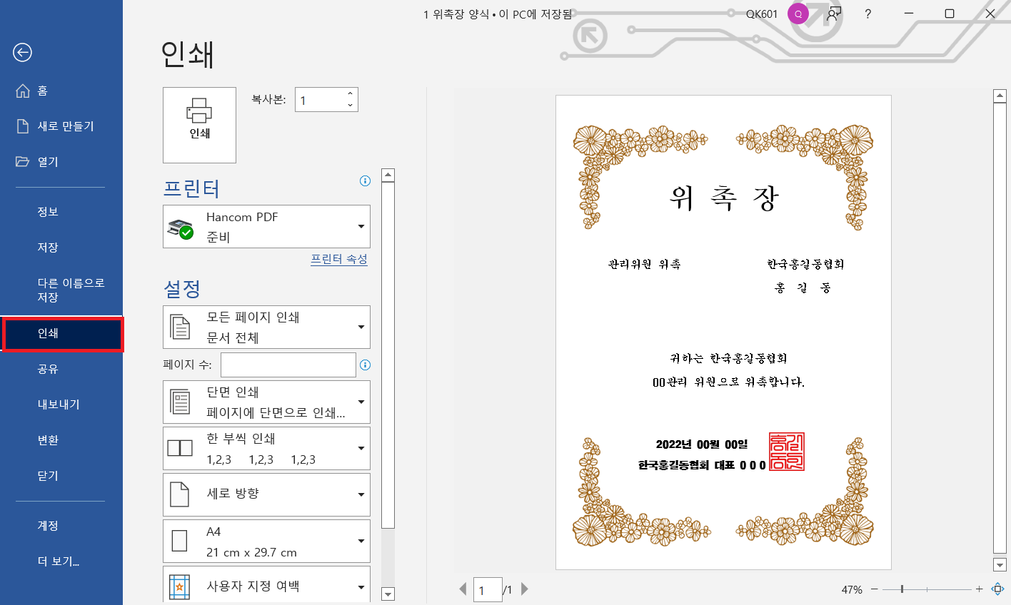 첫 이미지로 봤던 해당 위촉장 양식 doc 파일입니다. 첫 번째가 워드 파일이며 두 번째가 pdf 파일입니다.