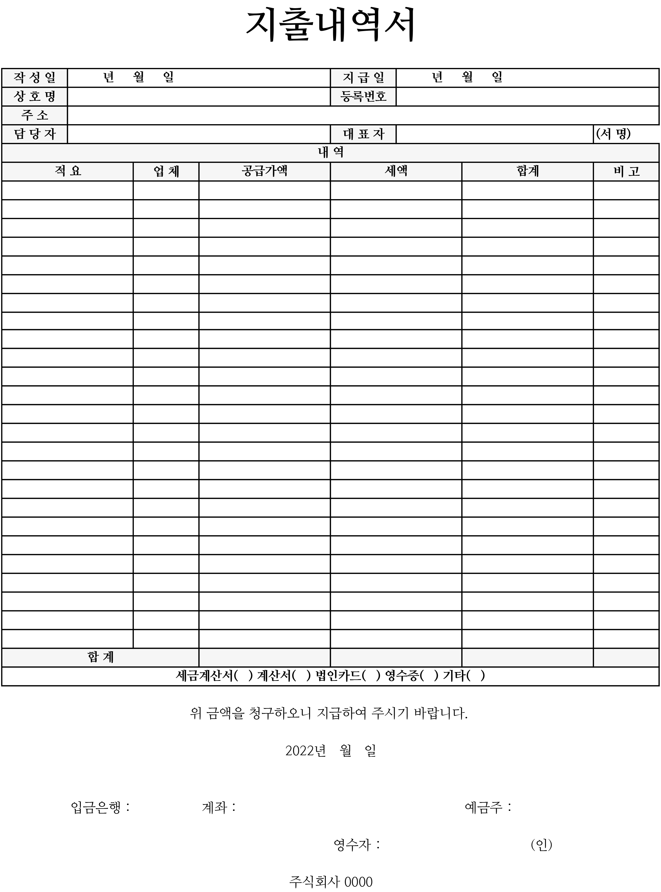 해당 지출내역서 엑셀 이미지 원본과 그 밑에 엑셀 xlsx 파일을 첨부했습니다. 첨부된 파일을 바로 다운로드 하셔도 됩니다.