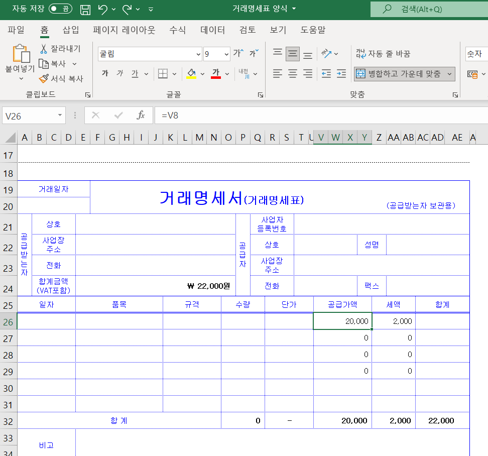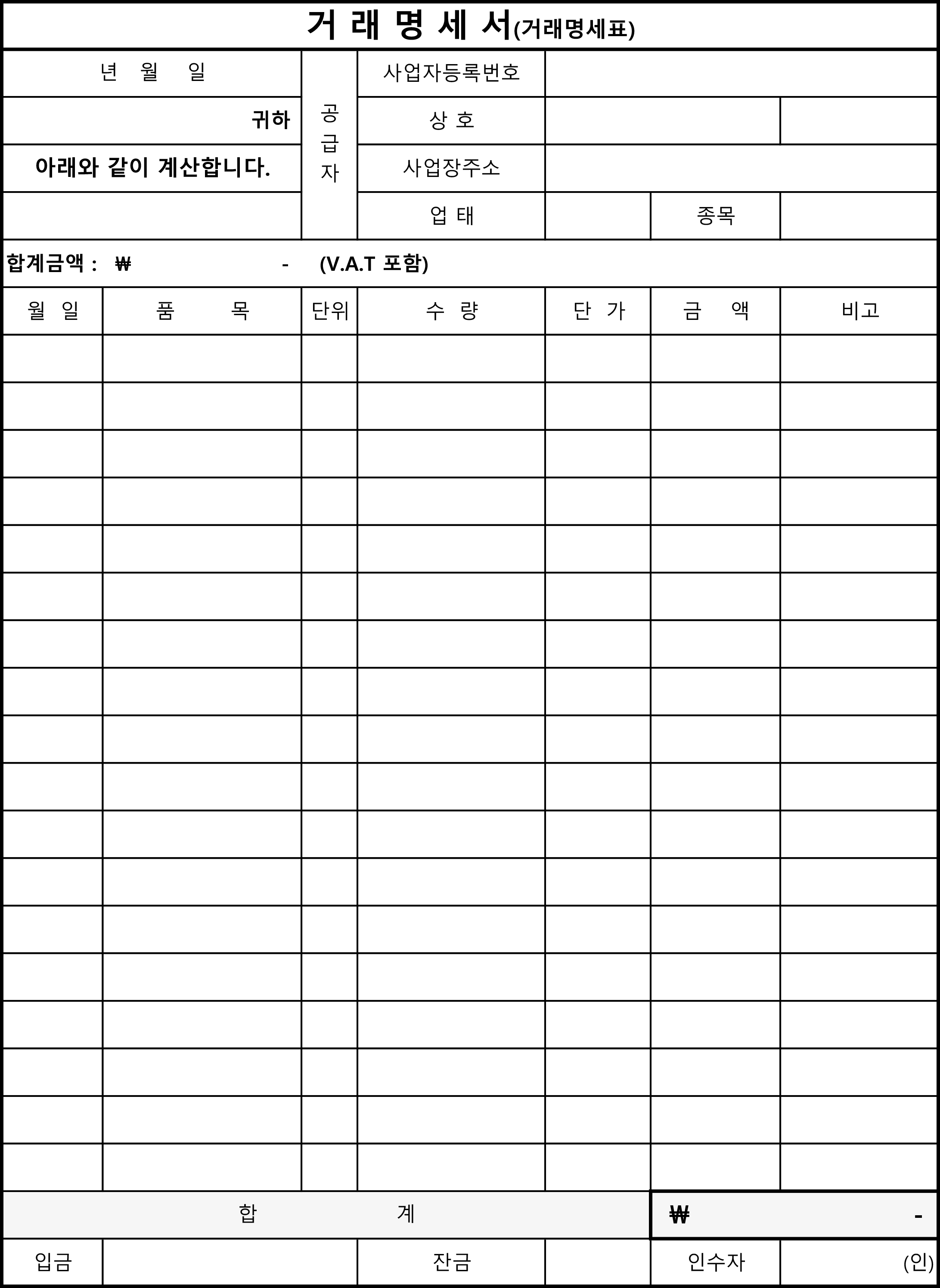 거래명세표 무료 엑셀양식 다운로드