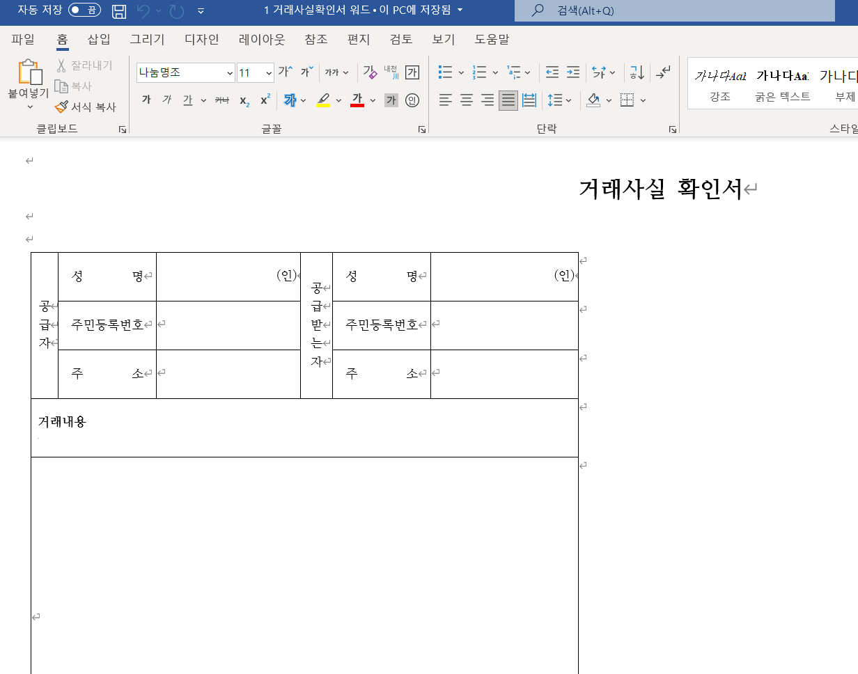 이렇게 총 3가지의 거래내역확인서를 한글, 워드, 엑셀 파일로 각각 제작하여 첨부해봤으며, 도움이 되는 자료가 되셨길 기원합니다.