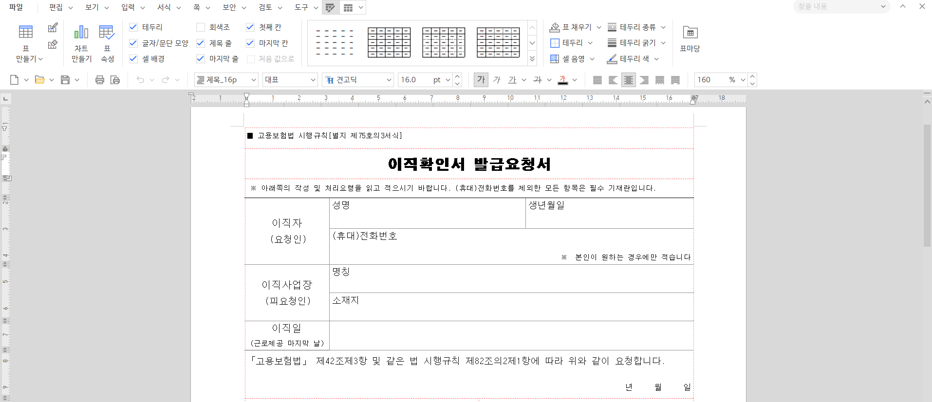 이직확인서 발급요청서 양식입니다. 첫 번째 첨부된 파일이 한글 hwp 파일이며, 두 번째는 pdf 파일로 각각 첨부했습니다.