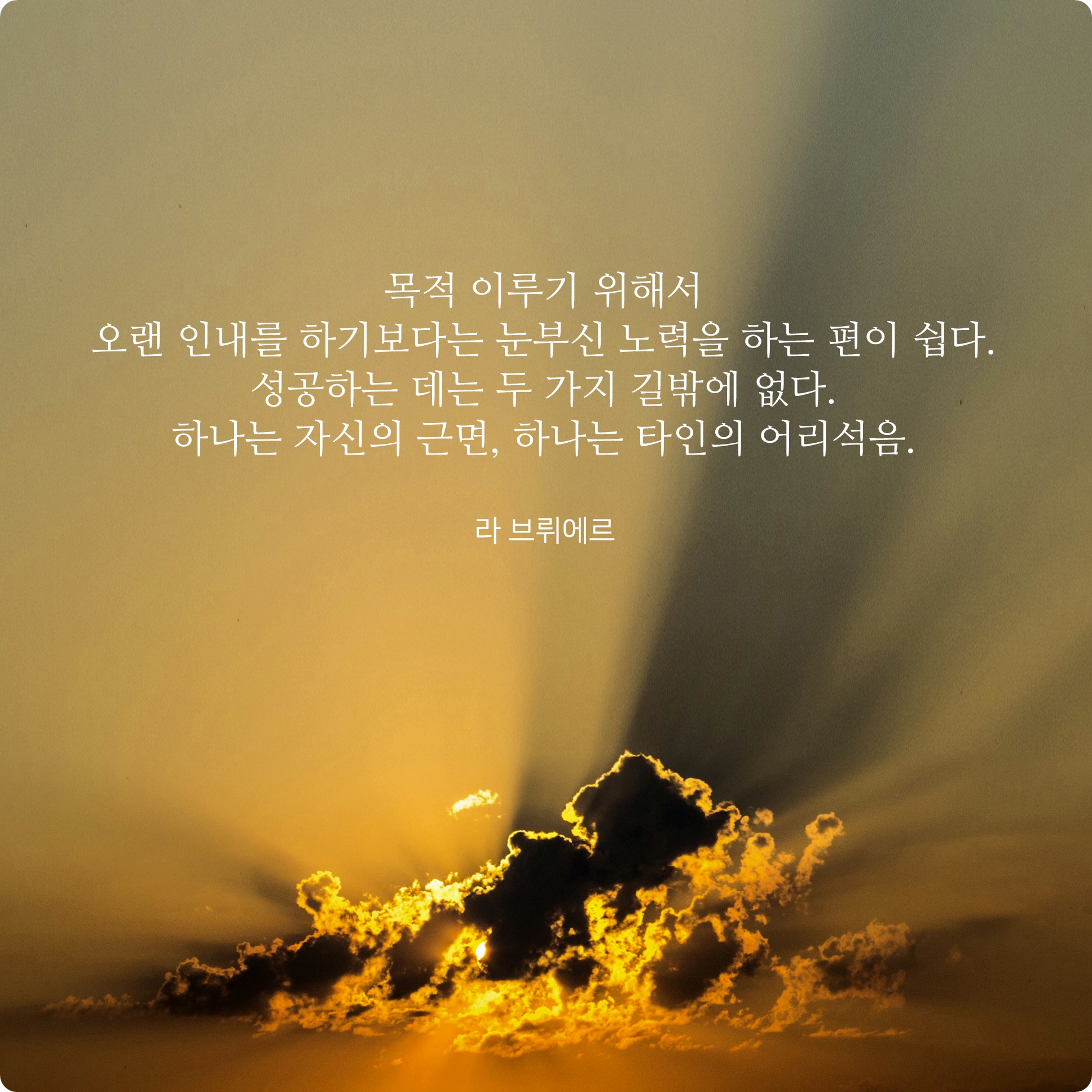 오랫동안 인내심만을 갖고 노력하는 것보다는 눈부실만큼 빛나는 노력을 해야한다는 의미인데요. 성공을 위해서는 자신이 근면하고 성실해야한다는 점을 강조한 그런 메세지입니다.