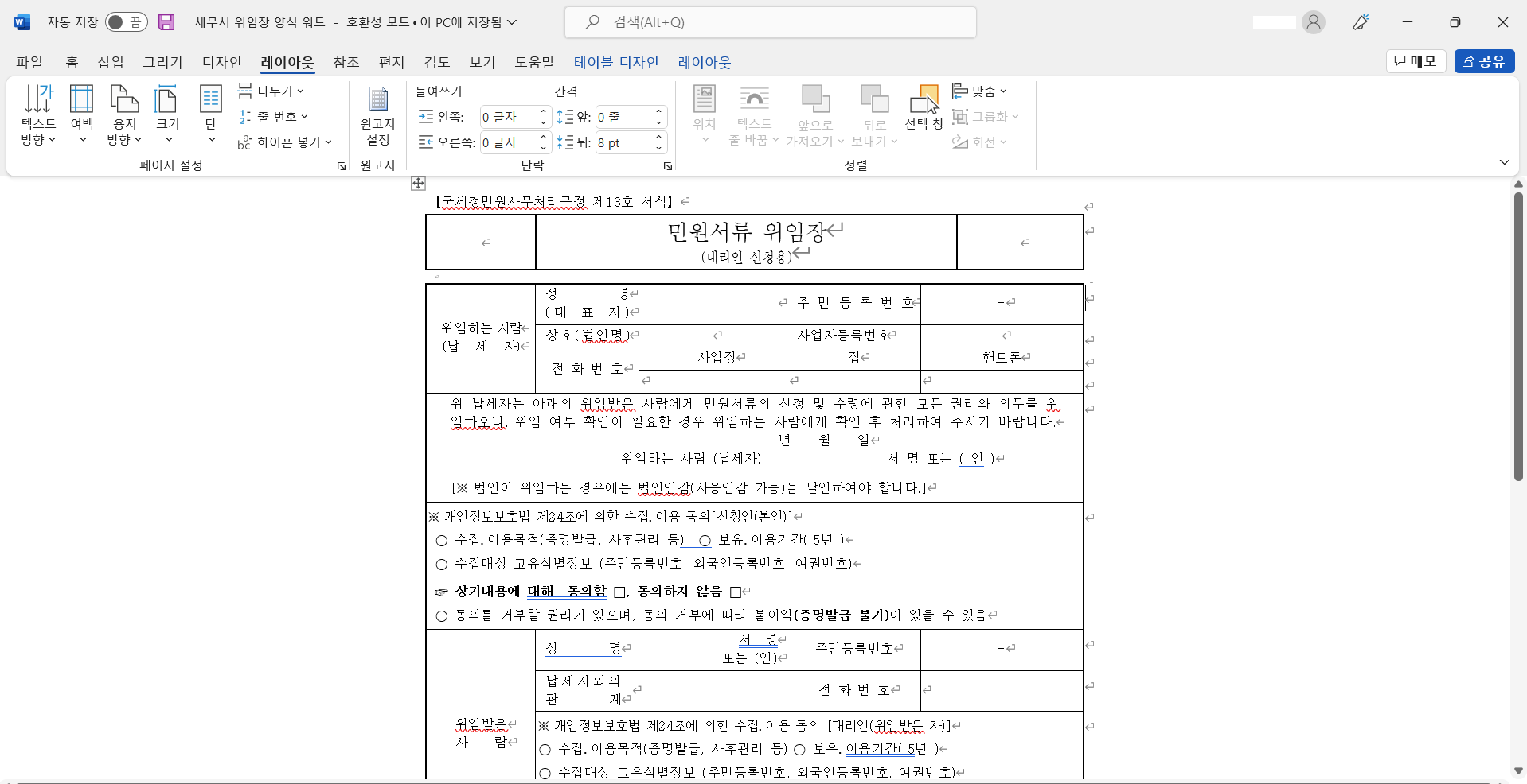 실제 제출용으로 많이 사용하고 있는 세무서 위임장 양식을 한글 hwp 파일과 워드 doc 파일로 무료 다운로드하실 수 있게 원본으로 첨부했습니다.