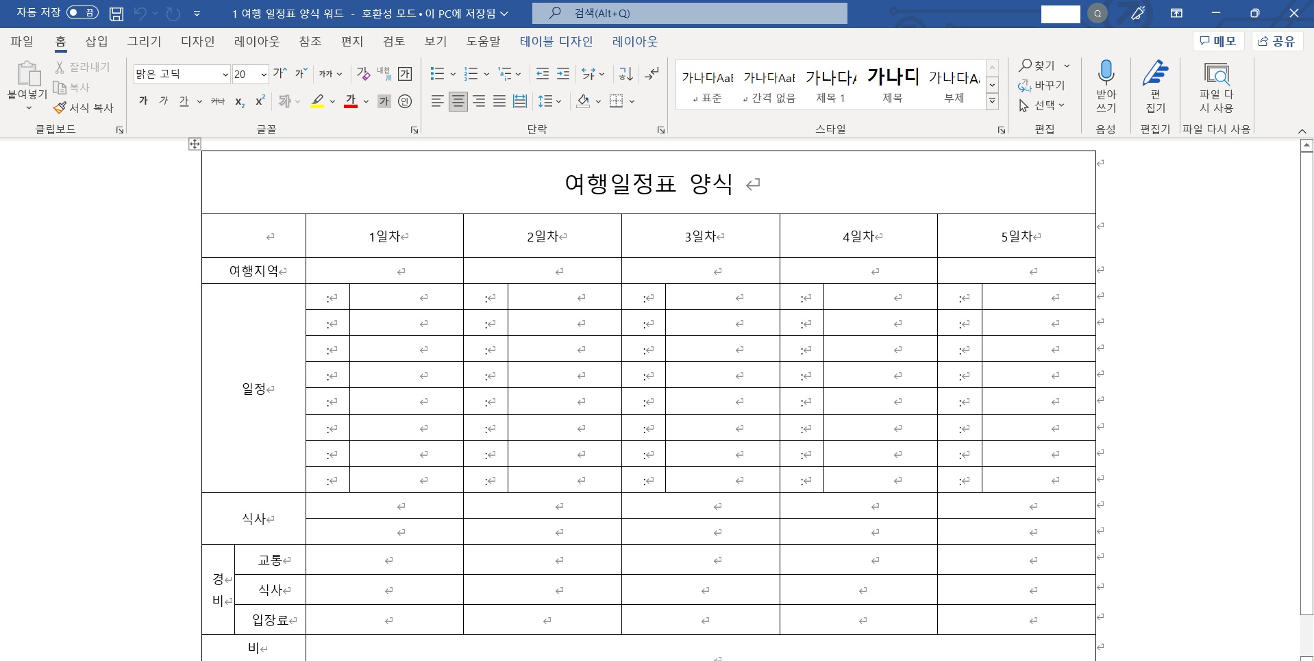끝으로 여행일정표 양식 워드 doc파일입니다.