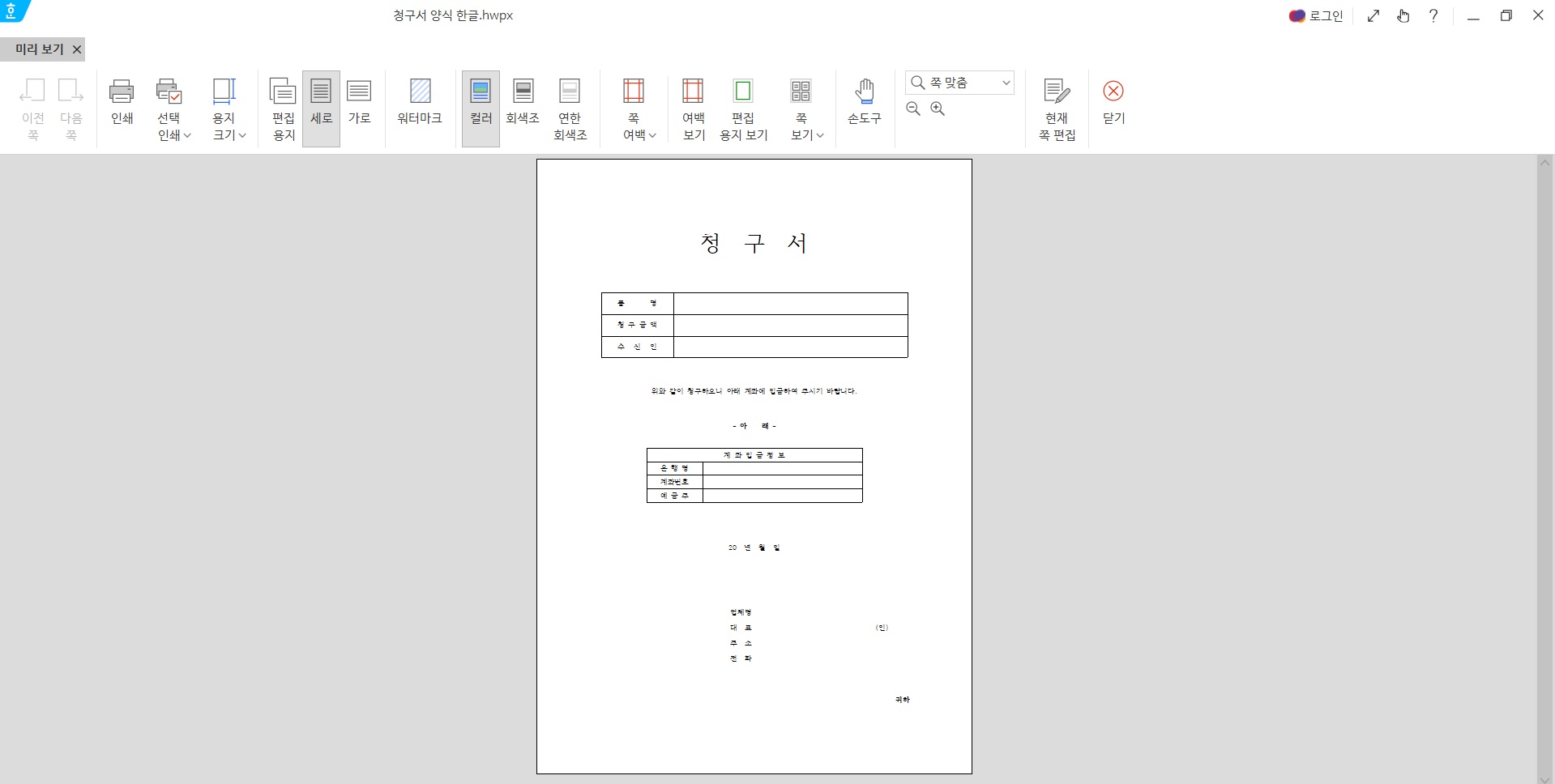 기본적인 청구서 양식을 한글 hwp, 엑셀 xls, 워드(word) doc 파일로 무료 다운로드할 수 있도록 각각 제작하여 첨부했습니다.