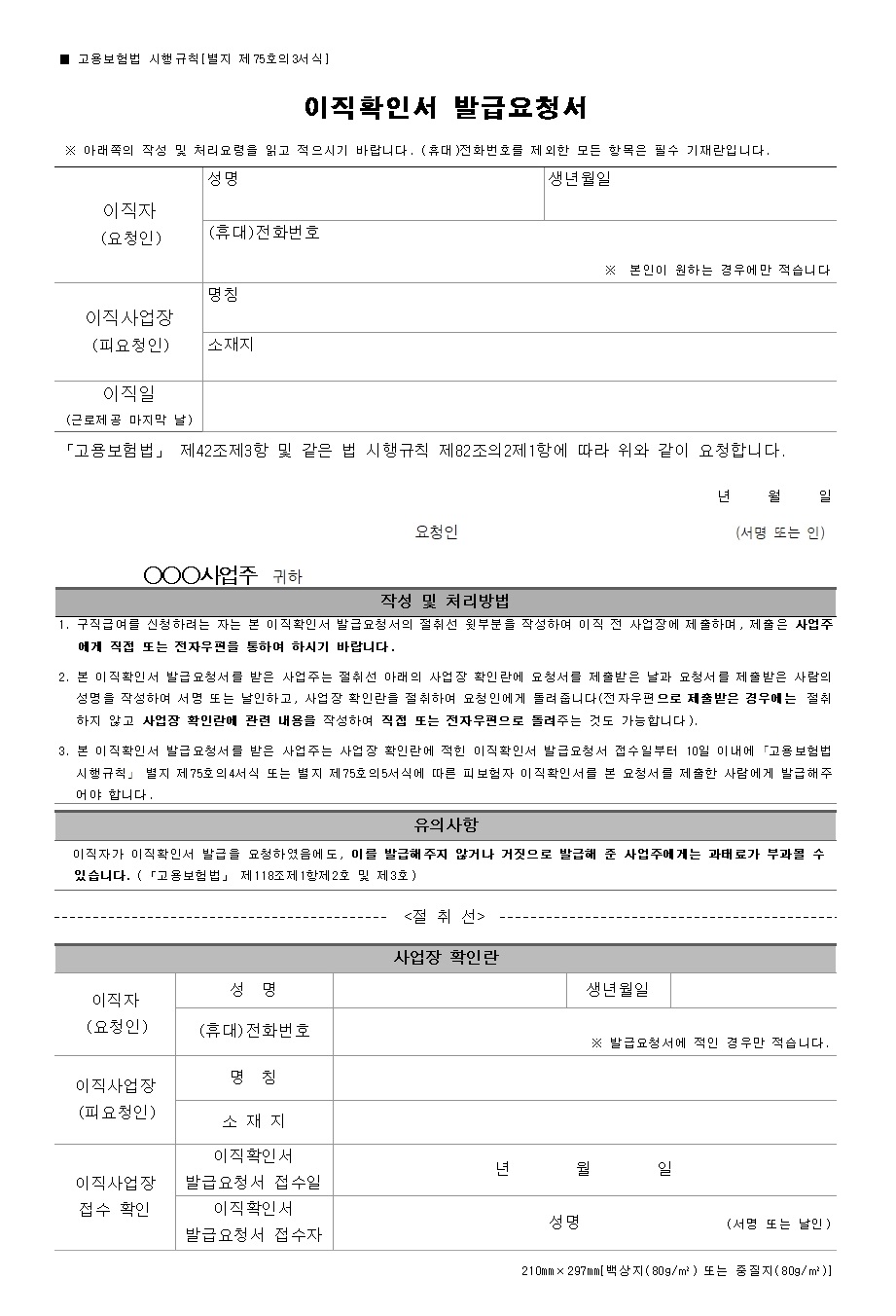 이직확인서 양식 및 발급요청서 서식 첨부 (한글, 워드, 엑셀)