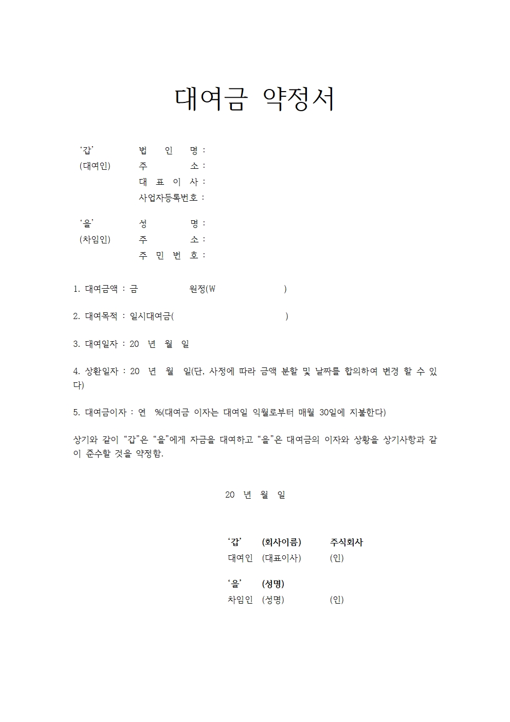 여러 종류의 약정서 양식을 한글 hwp와 워드 doc 파일로 무료 다운로드하실 수 있도록 원본으로 각각 첨부했습니다.