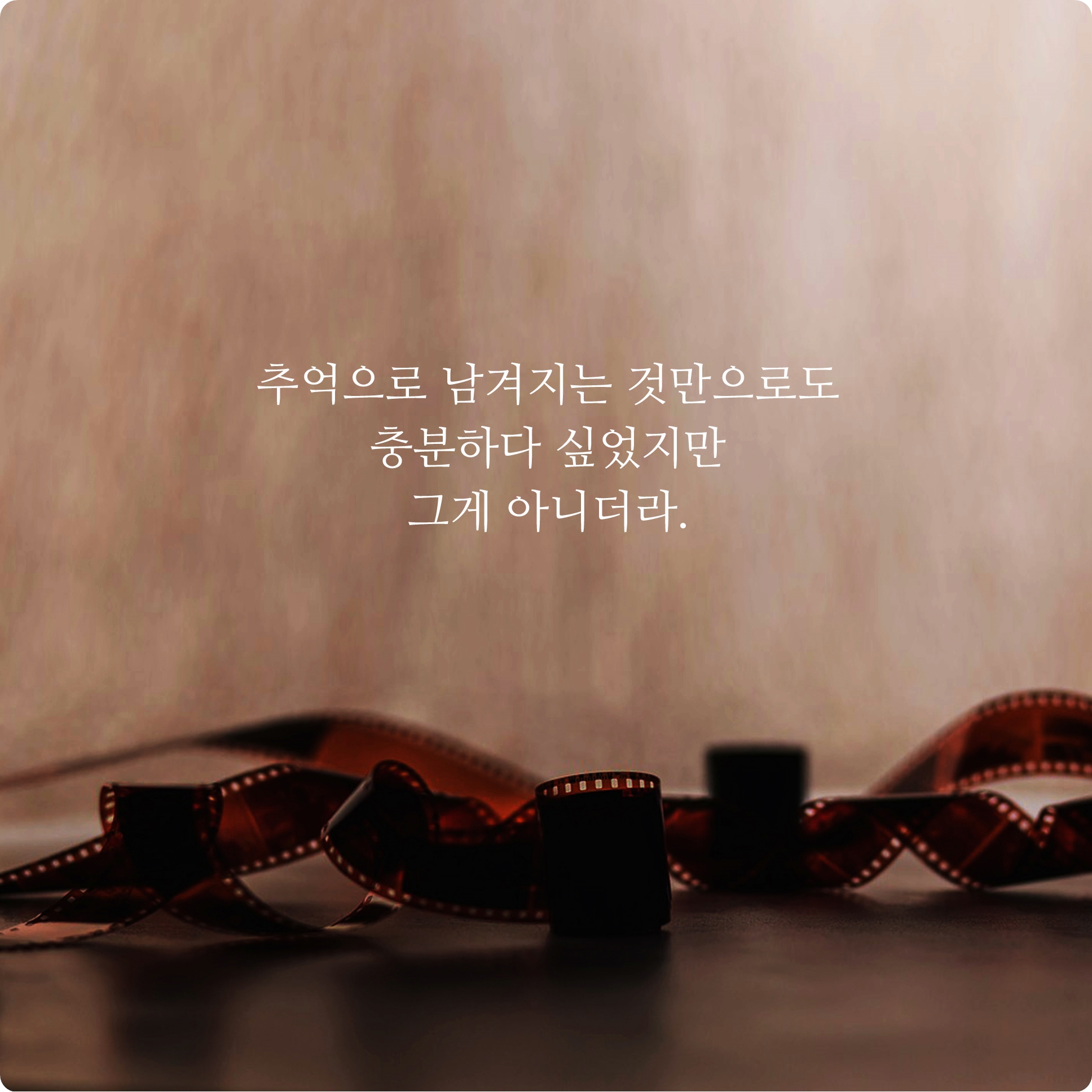 추억으로 남겨지는 것만으로도 충분하다 싶었는데 지금의 이별은 그게 아니더라.. 매 순간 이별은 똑같이 아프고 늘 공허함으로 남겨졌다.. 이별을 경험한 모든 이들이 공통적으로 느끼는 감정이 아닐까요? 이번에는 조금 괜찮을 것이라고 생각했지만 또 그게 아닌 새로운 아픔을 경험하게 되는 것 같습니다.
