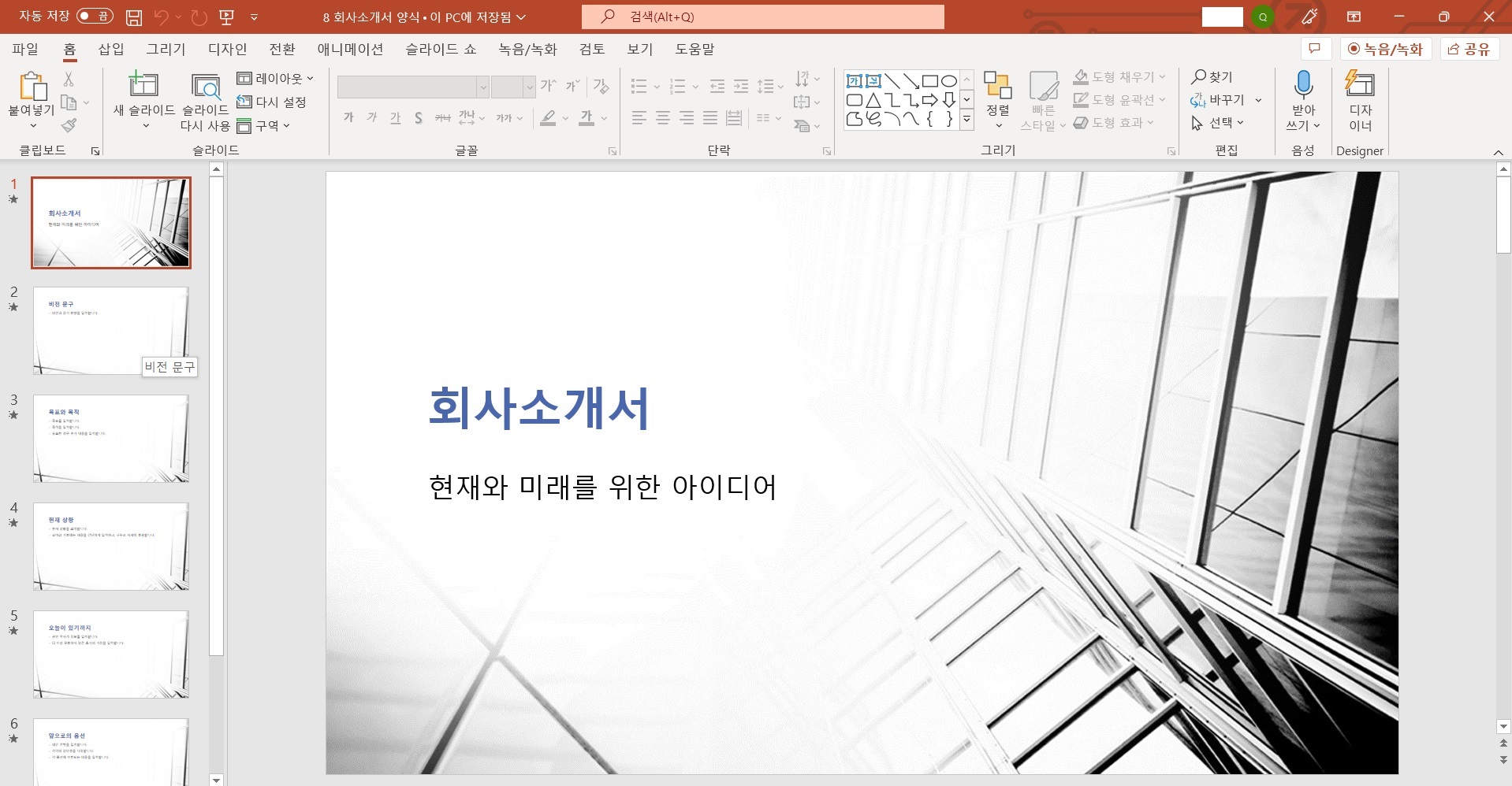 다음은 모던하고 심플한 느낌이 나는 건물 템플릿입니다.