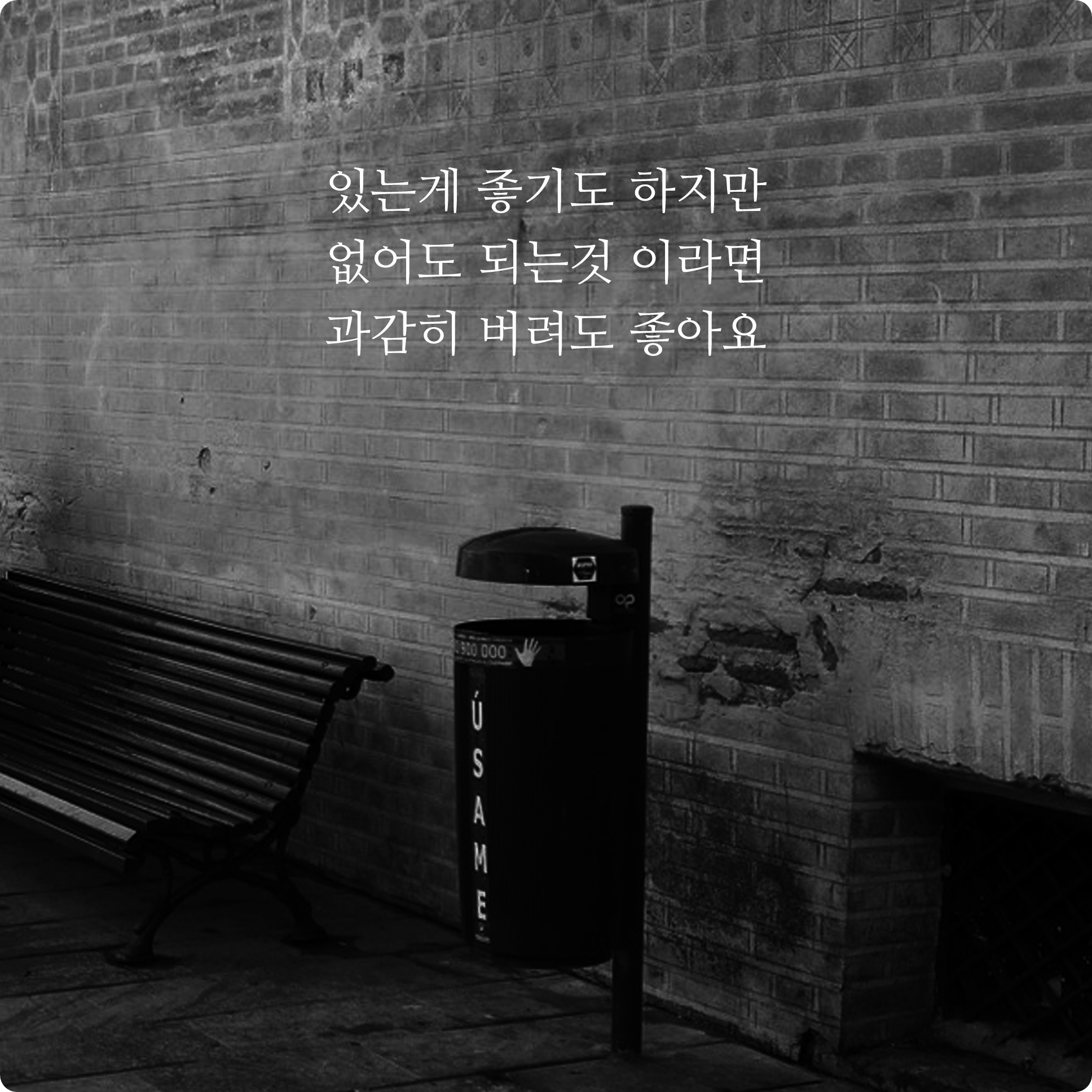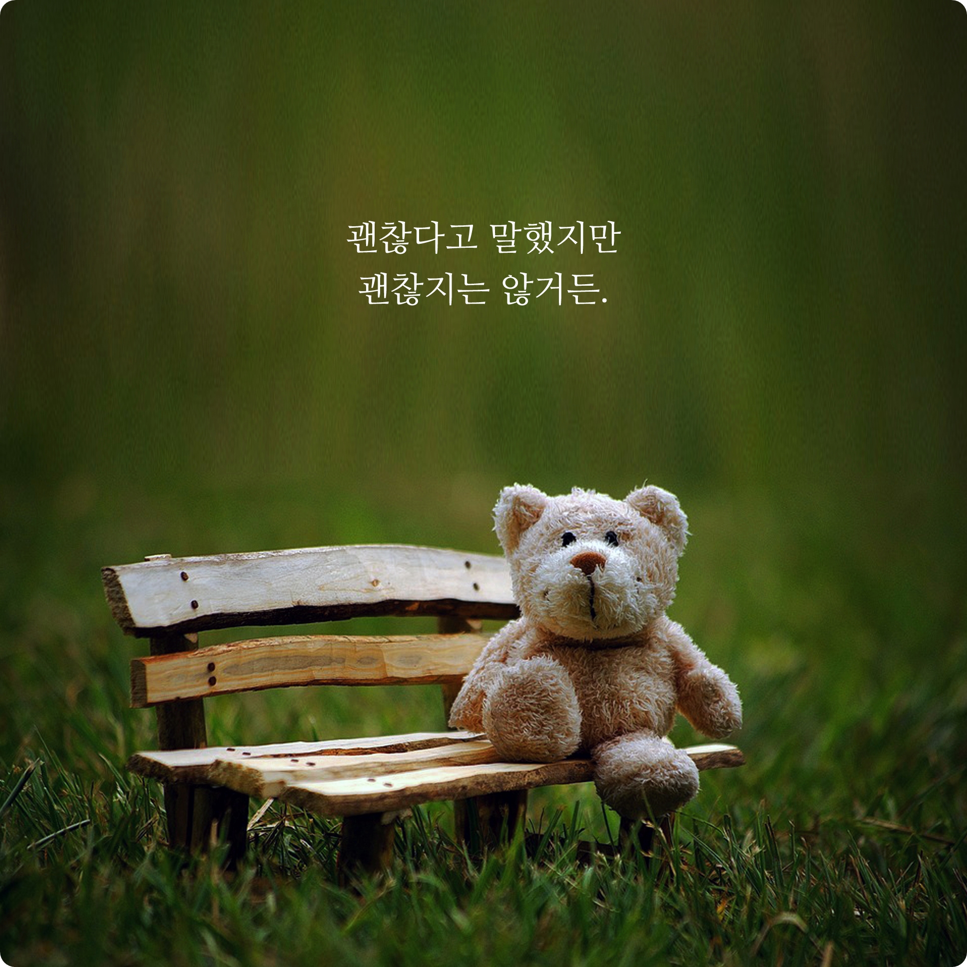 내 낮은 모습을 보여주기 싫어서 나약한 내 모습을 들키는 것이 싫어서 때로는 선의의 거짓말을 하기도 하죠. 하지만 괜찮다고 말했을때 중에서는 정작 진짜 괜찮다고 했었던 적은 많지 않았던 것 같아서 짧은 문장으로 표현해봤습니다.