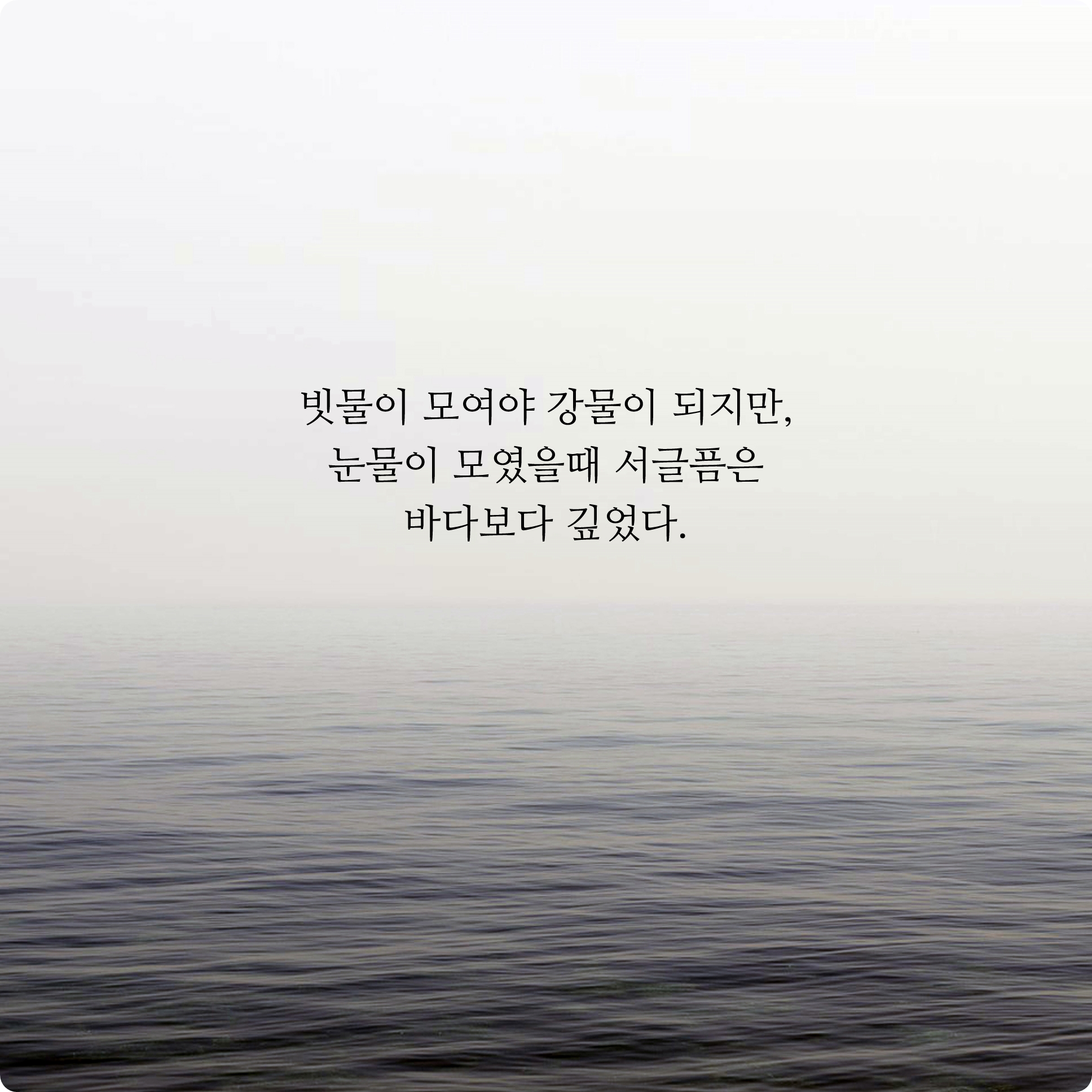 슬픔 또는 서글픔의 감정은 커질수록 그것이 마음속에 상처로 남아 그 멍도 서서히 점점 깊어져만 가는 것 같네요. 그래서 그런 그리움과 슬픔의 감정들은 빗물, 강물, 바다로 표현해봤습니다.