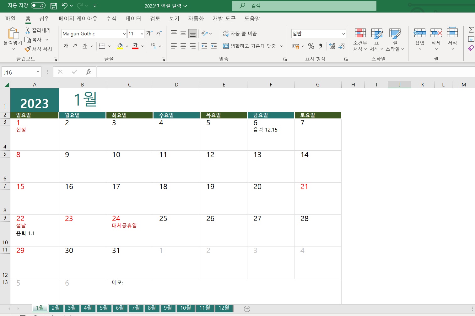 2023년 달력 엑셀 파일을 무료 다운로드할 수 있도록 제일 하단에 원본으로 첨부를 했습니다. 드디어 제작이 끝나 완성한 달력을 업로드 해드립니다. 댓글로 많은 분들이 요청을 주셔서 기존에
