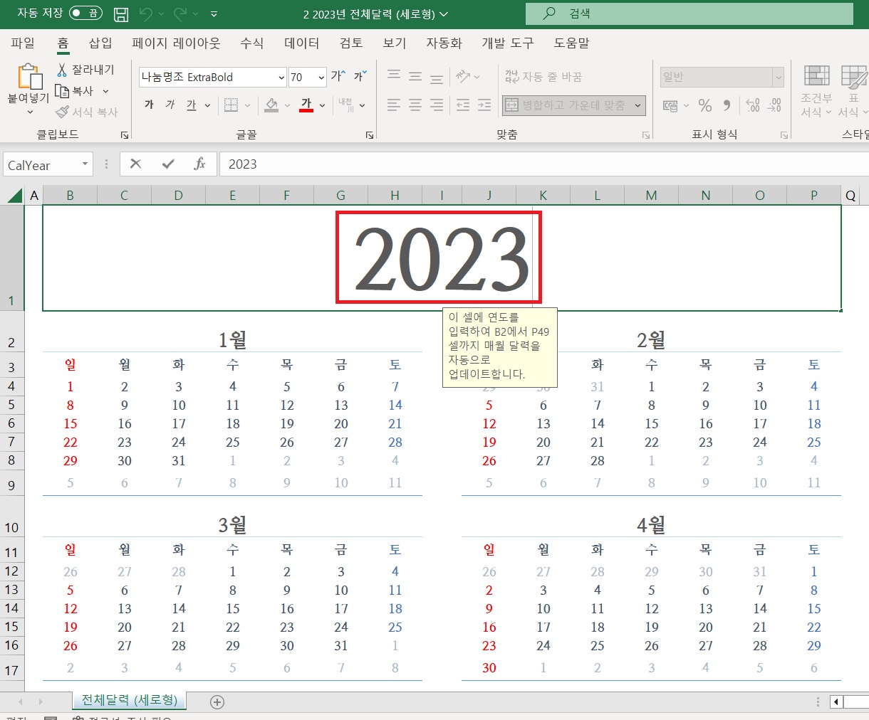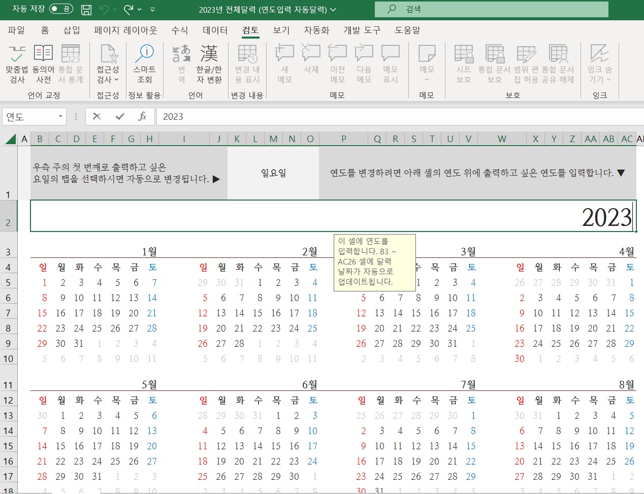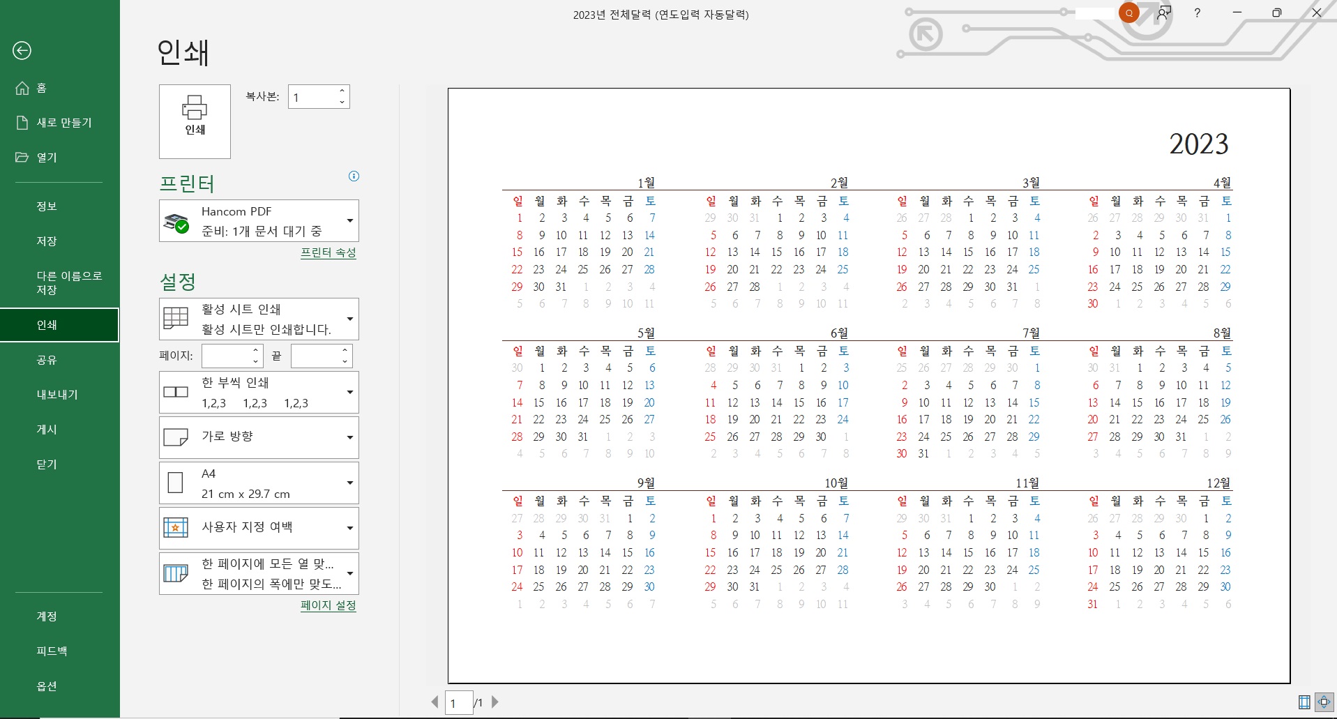 2023년 달력 엑셀 무료 다운로드 PDF파일 첨부