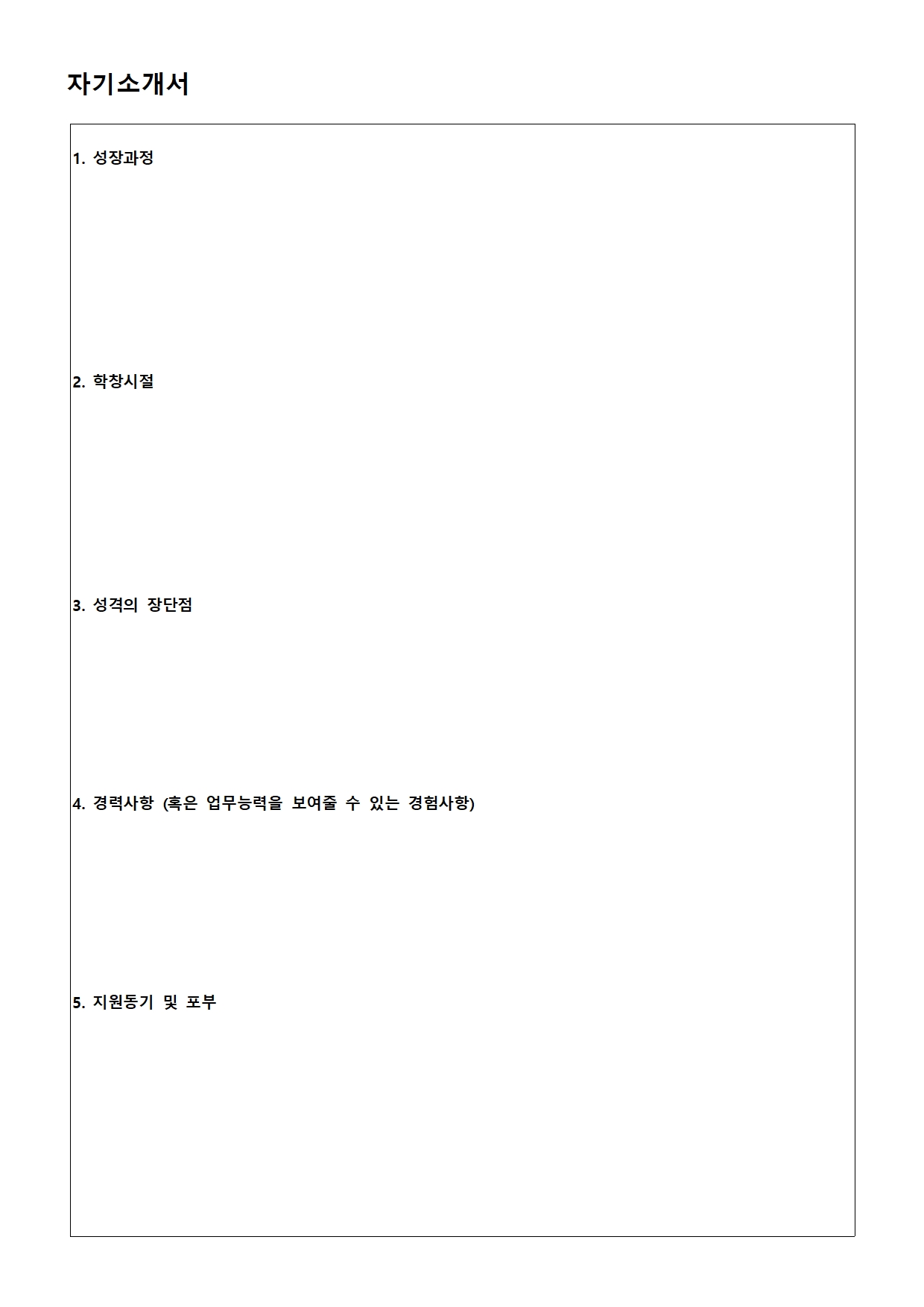 | 자유 이력서 양식 자기소개서 예시 포함 다운로드 (0) | 2024.02.22 |