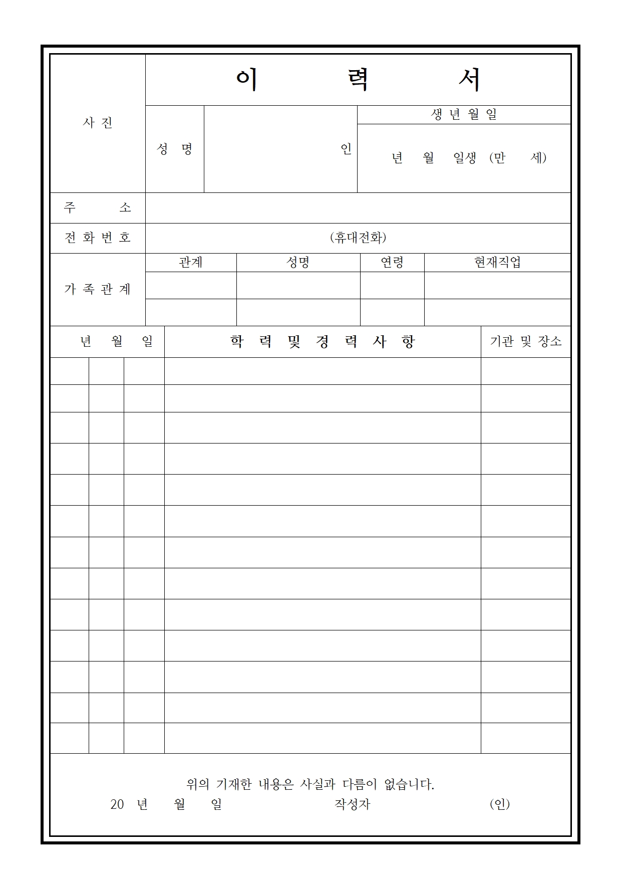 | 아르바이트 이력서 양식 hwp pdf 30종 무료 다운로드 (1) | 2024.03.11 |