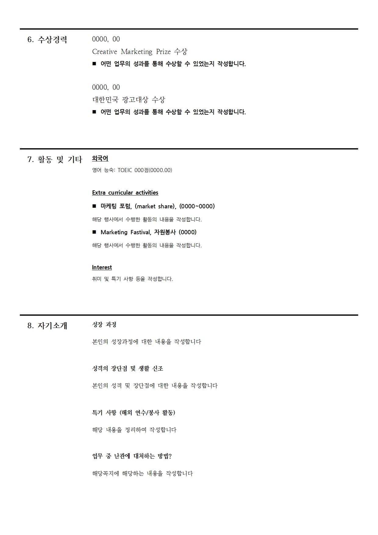 | 경력기술서 양식 hwp 무료 다운로드 7종 (0) | 2024.04.17 |