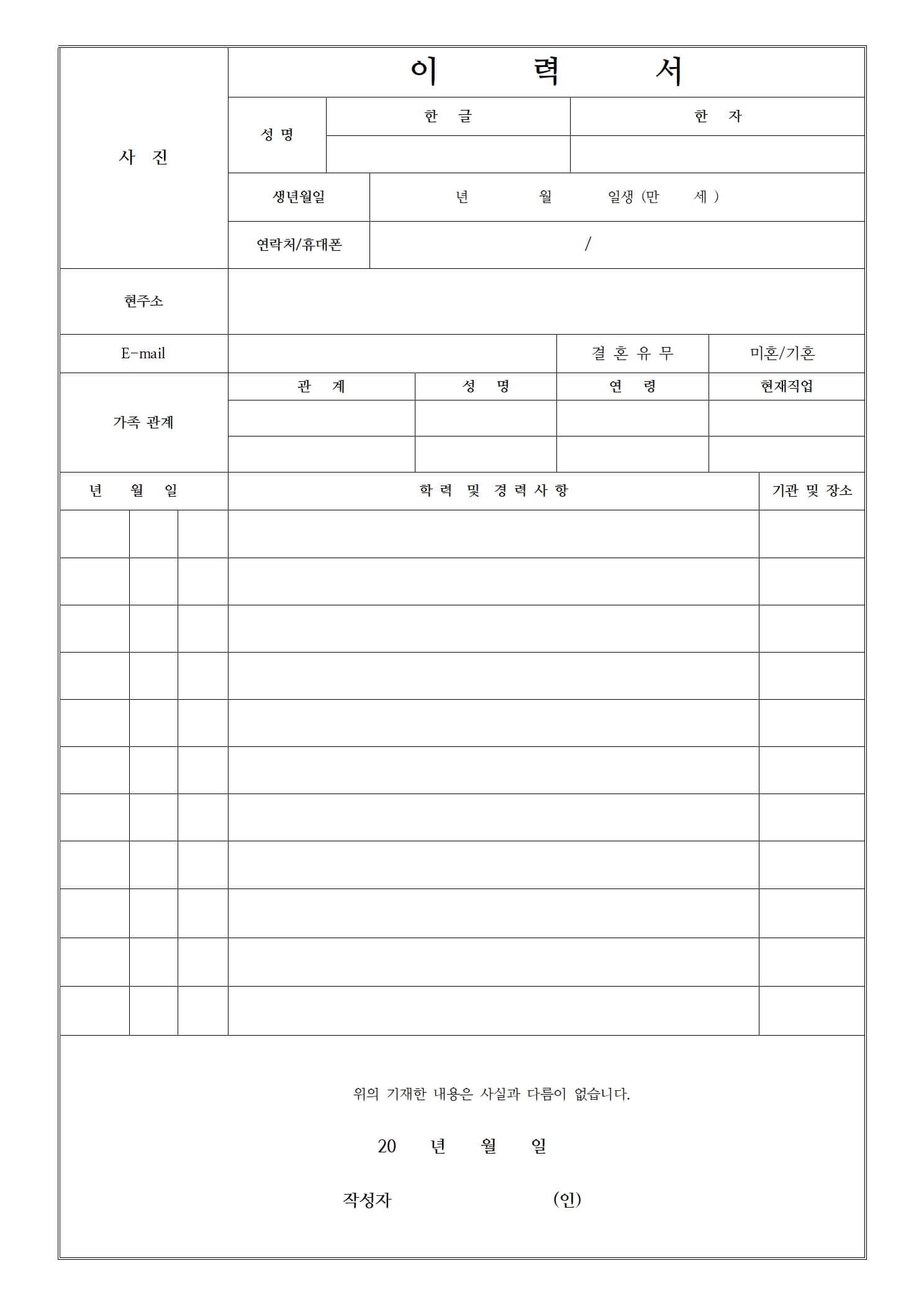 해당 이력서 양식 다운로드는 위의 페이지를 방문하시면 됩니다.