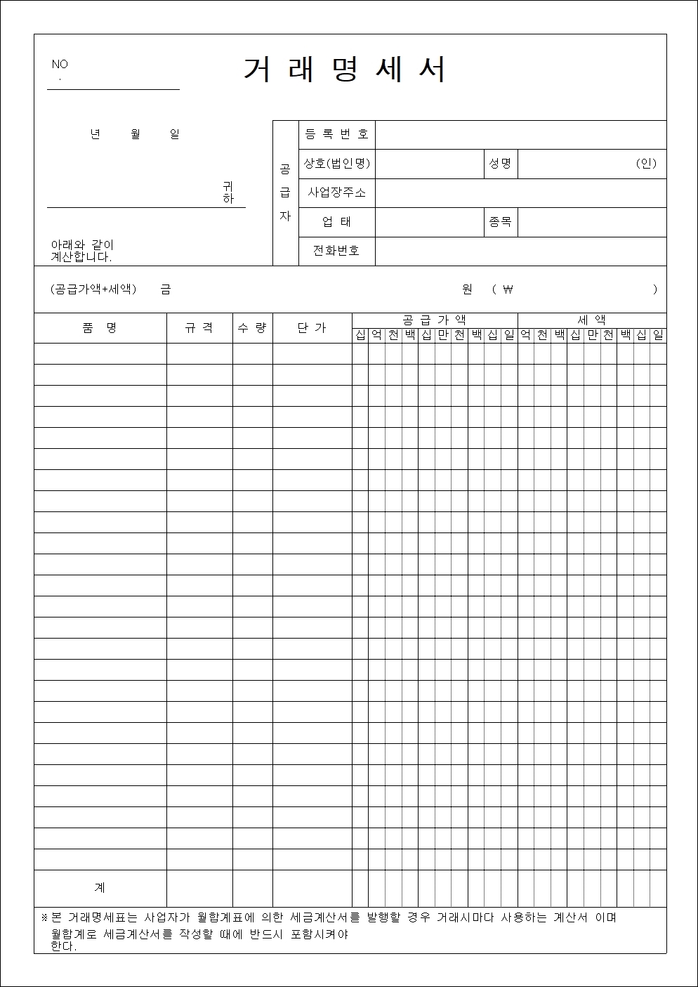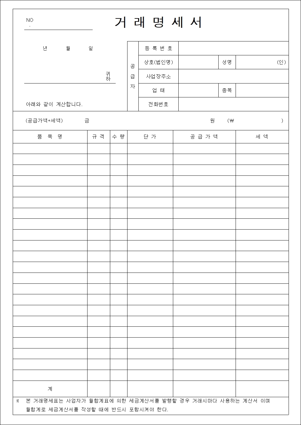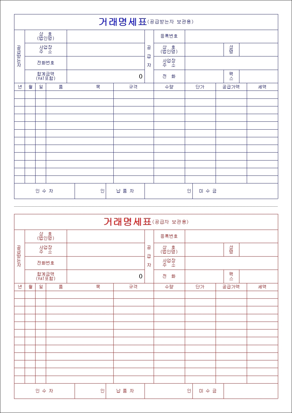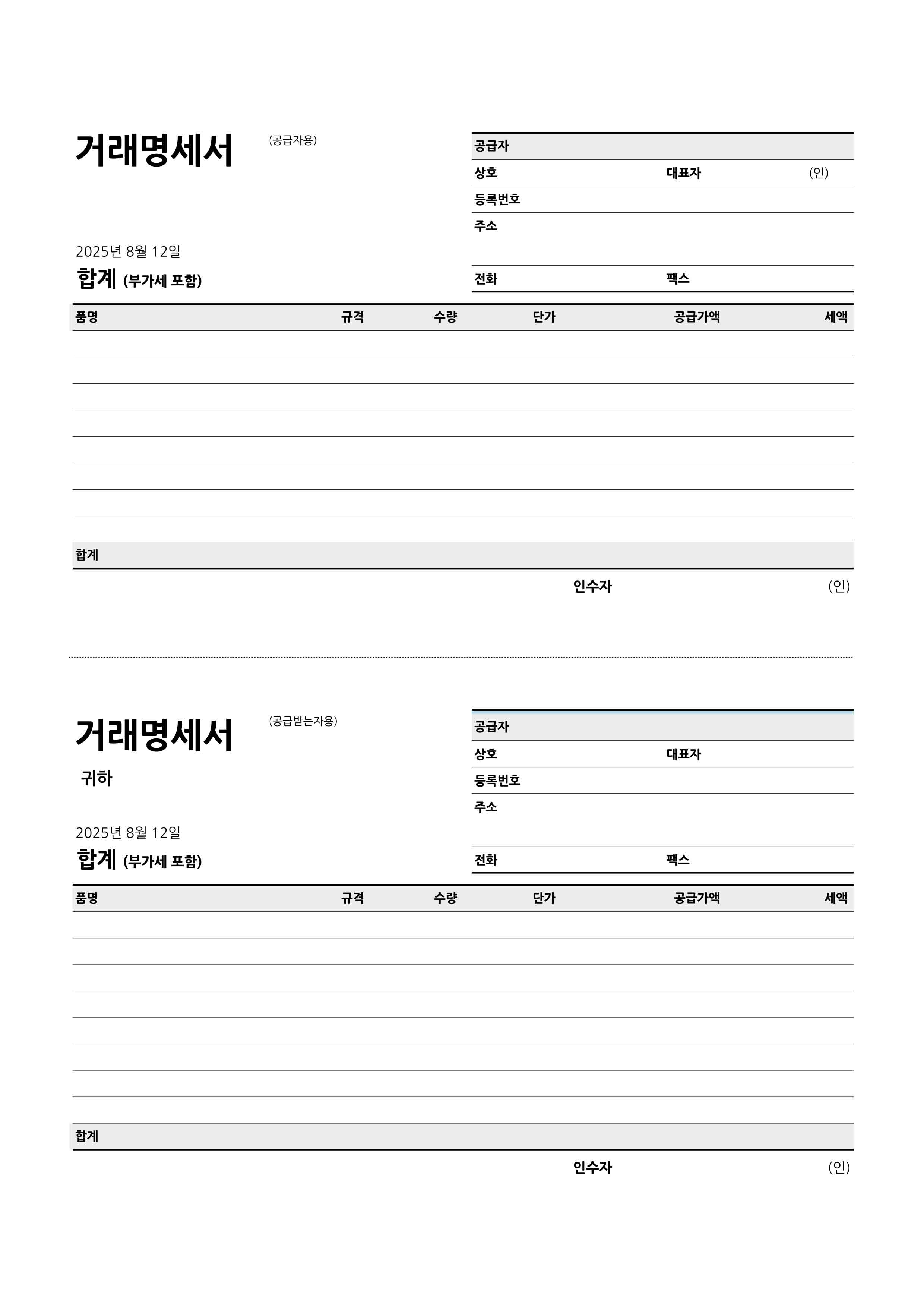 거래명세서 양식 5종 hwp xls pdf 무료 다운로드 - glelog.net