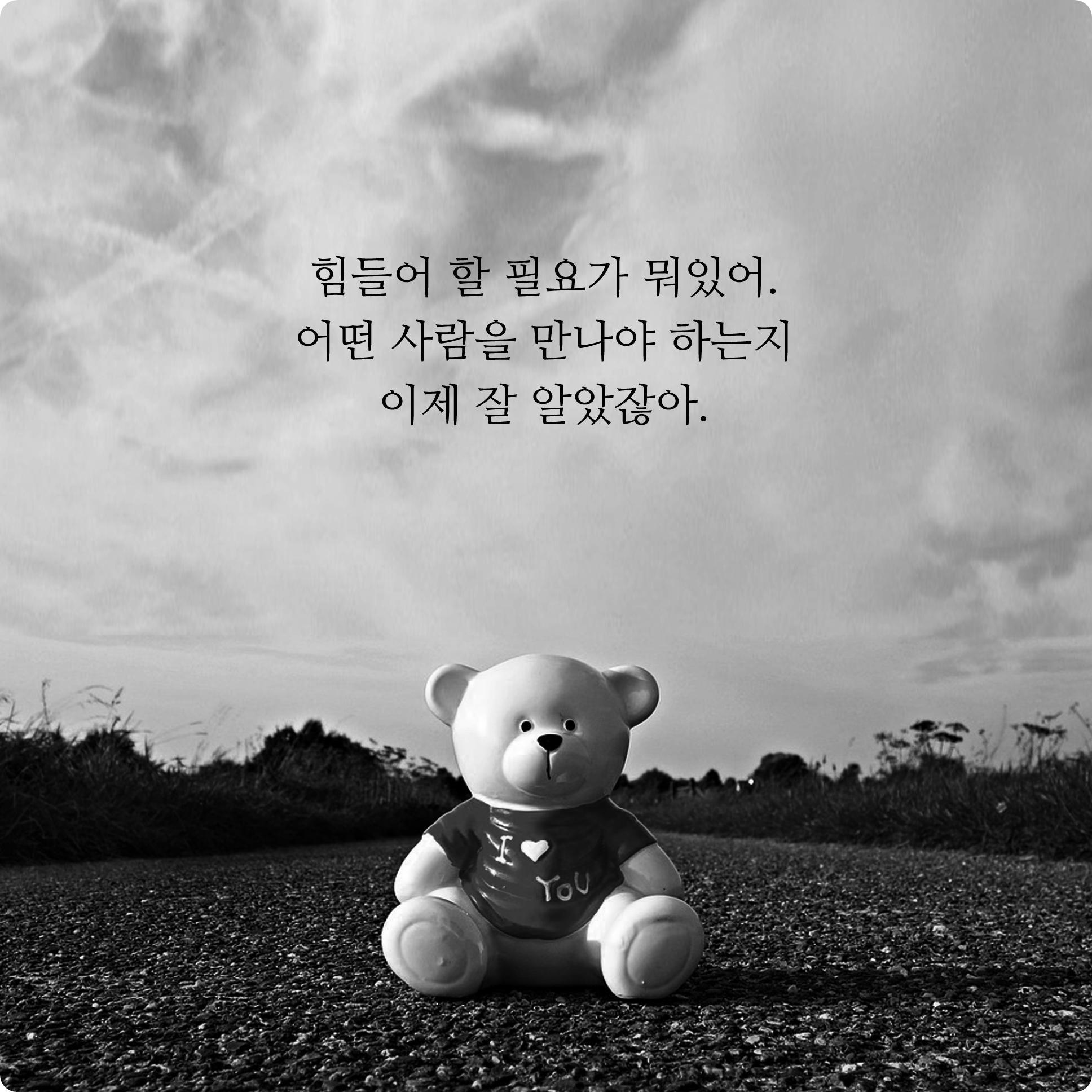 힘들어 할 필요가 뭐있어. 어떤 사람을 만나야 하는지 이제 잘 알았잖아.