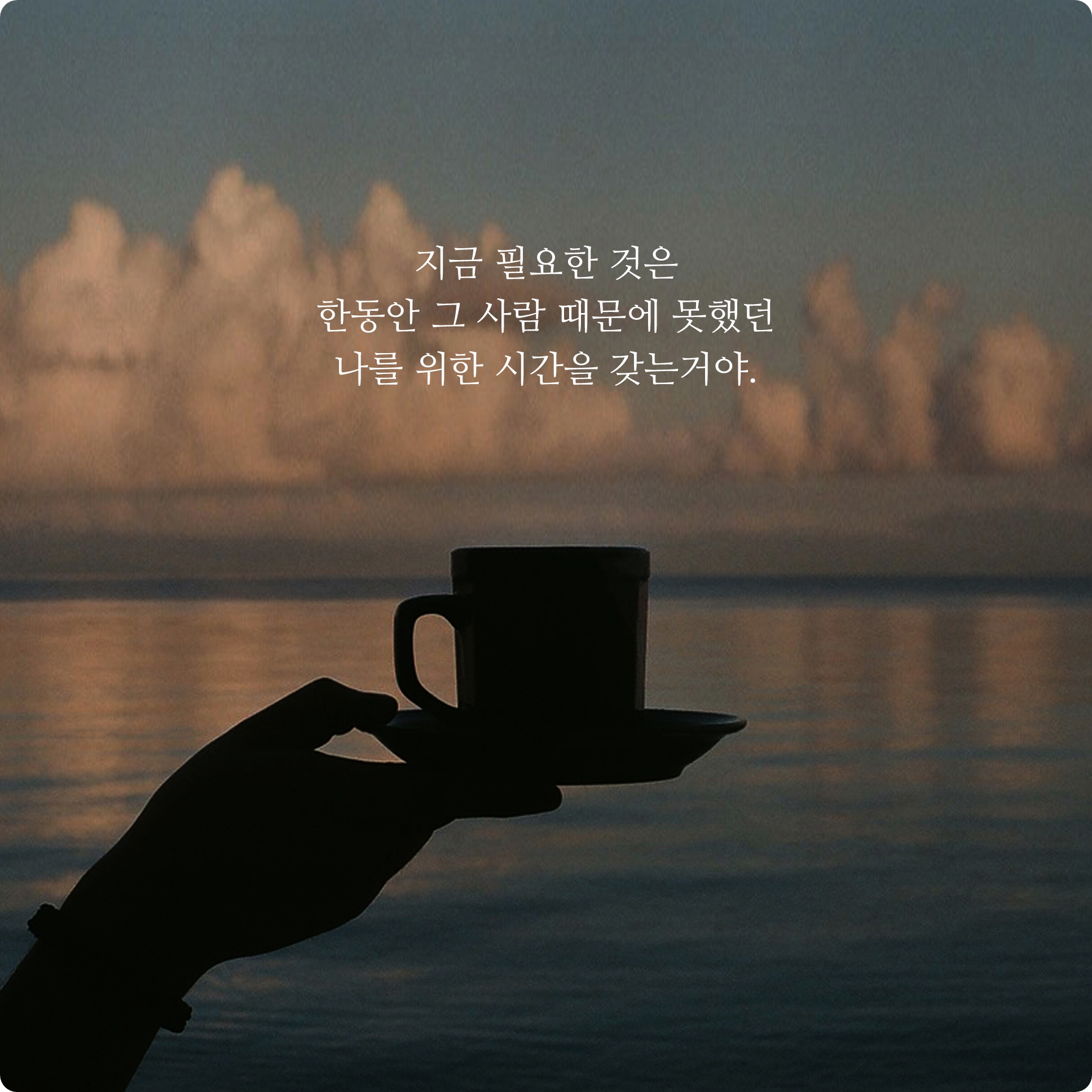 지금 필요한 것은 한 동안 그 사람 때문에 못했던 나를 위한 시간을 갖는거야.
