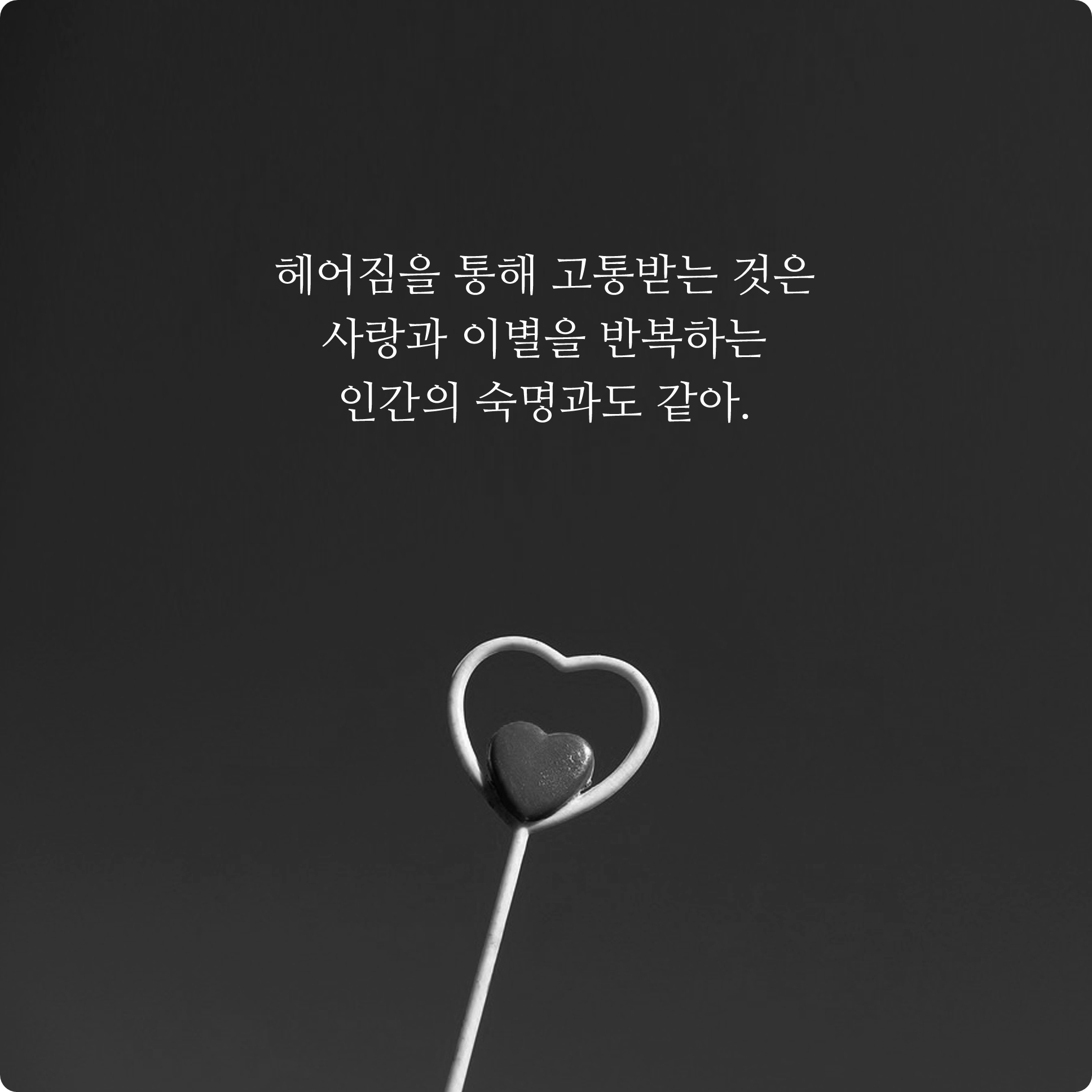 헤어짐을 통해 고통받는 것은 사랑과 이별을 반복하는 인간의 숙명과도 같아.