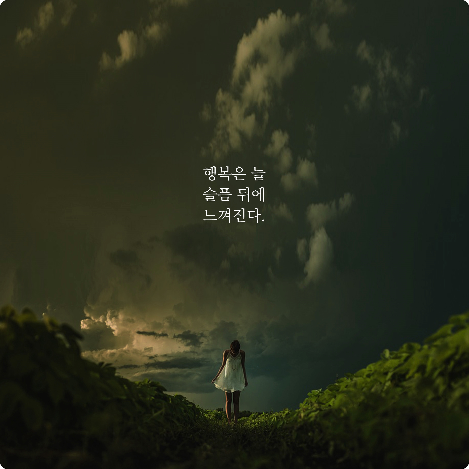 반대로 생각한다면 슬픔이 있기 때문에 우리가 행복이라는 감정을 느낄 수 있는 것이 아닐까요? 때로는 나에게 처한 모든 부정적인 상황들은 항상 긍정의 생각으로 받아들이는 자세가 필요합니다.