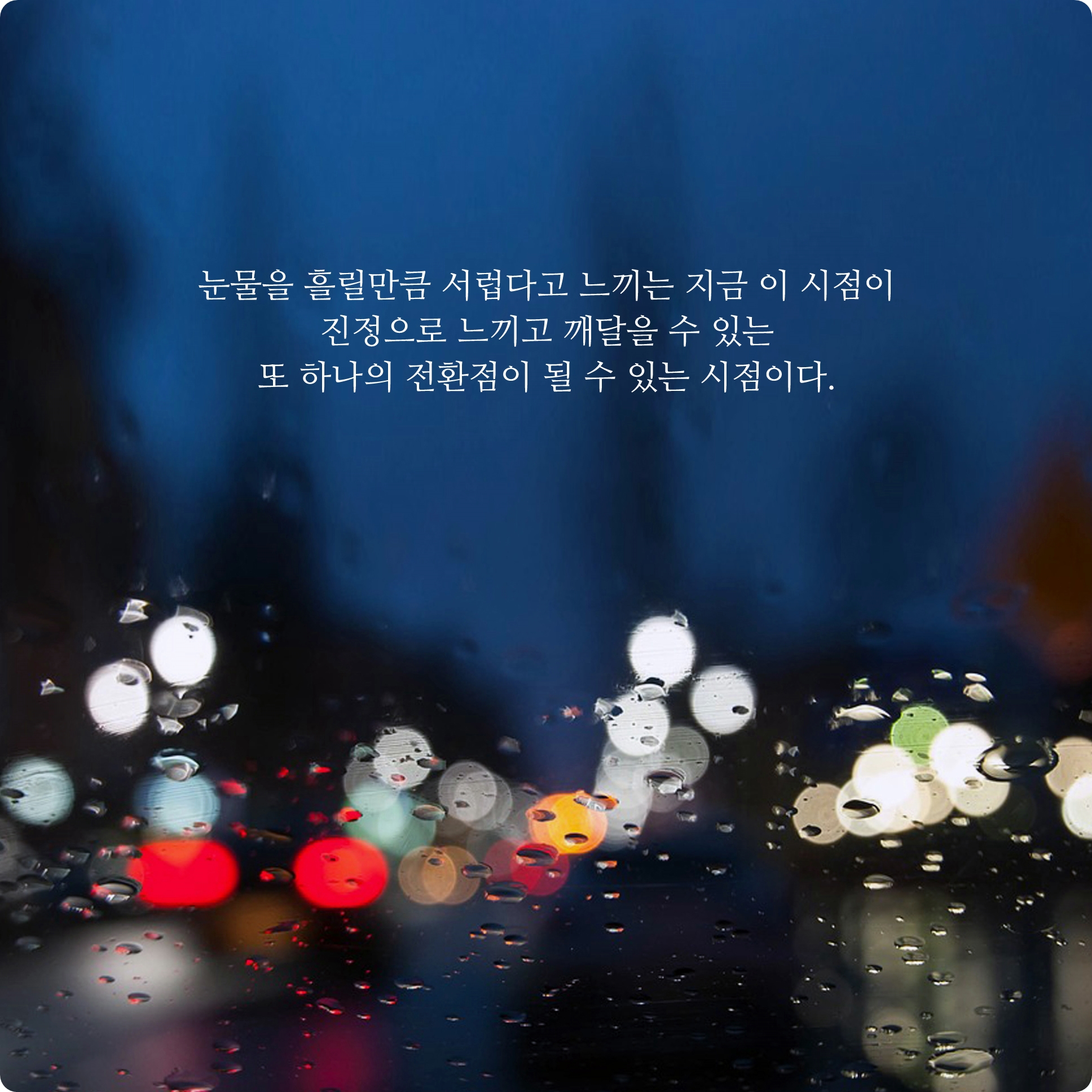 눈물을 흘릴만큼 서럽다고 느끼는 지금 이 시점이 진정으로 느끼고 깨달을 수 있는 또 하나의 전환점이 될 수 있는 시점이다.