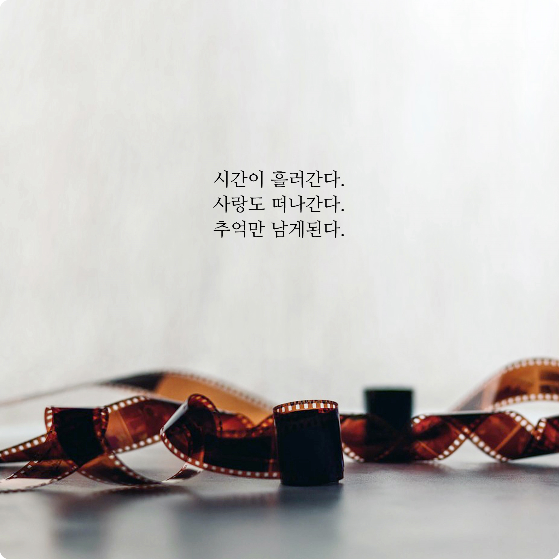 시간에 따라 모든 것들은 순리대로 자연스럽게 흘러갑니다. 다만 기억과 추억으로만 간직될 뿐이죠. 그 추억들이 현실에 직접적인 영향을 주는 것은 아니지만 단지 빠르게 흘러가버리는 시간을 잡고 싶은 나머지 추억이라는 명분으로 시간을 조금이라도 늦추기를 바랄 뿐이죠. 그래서 신은 인간에게 빠르게 흘러가는 시간의 흐름을 자각할 수 있도록 우리가 추억을 간직하고 그런 감성을 간직하도록 한 것은 아닐까요?