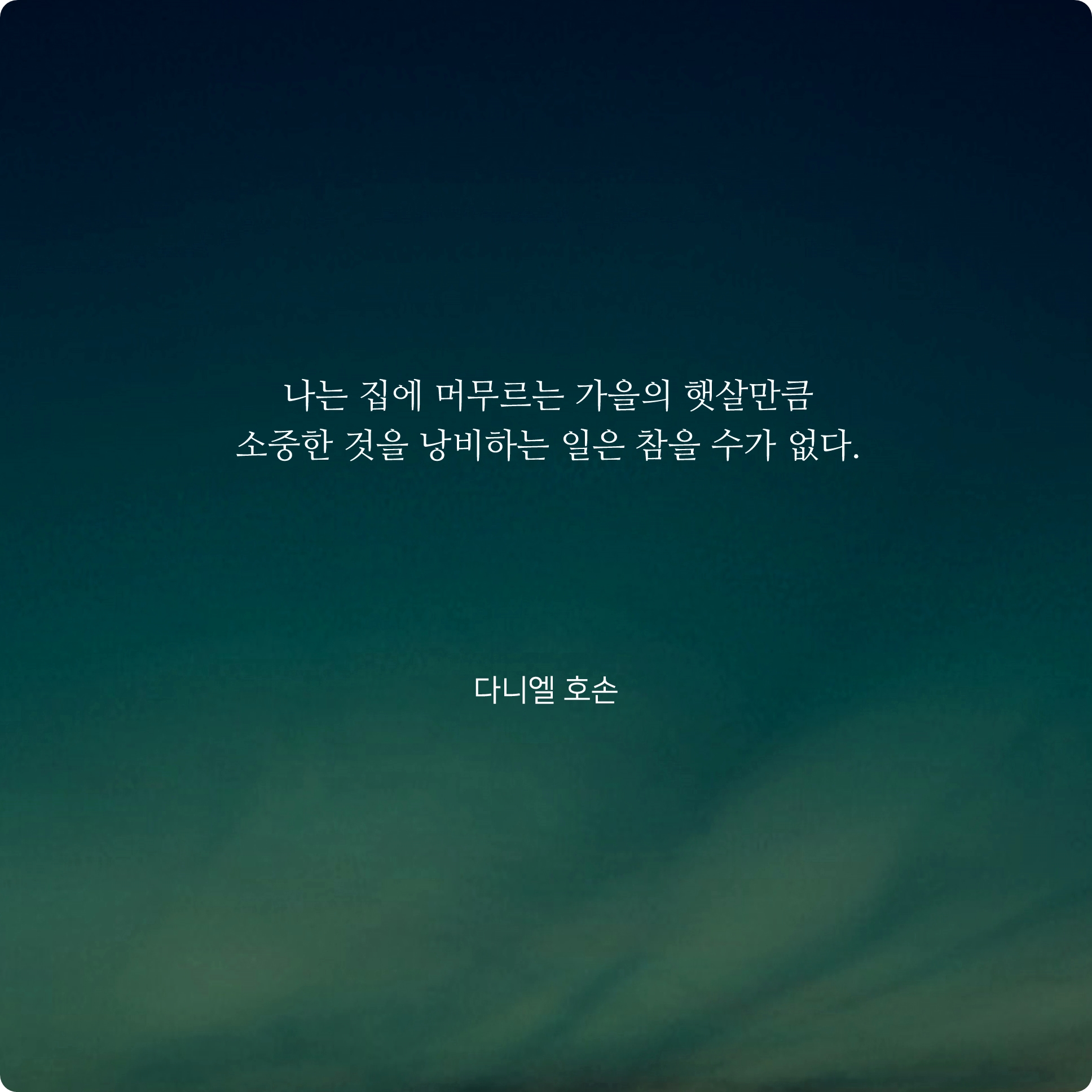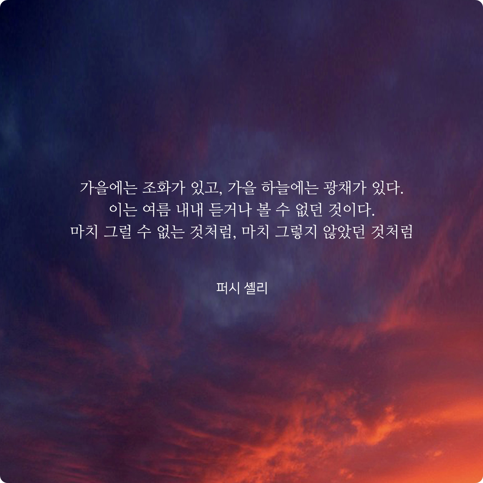 가을에는 조화가 있고 가을 하늘에는 광채가 있다. 이는 여름 내내 듣거나 볼 수 없던 것이다. 마치 그럴 수 없는 것처럼, 마치 그렇지 않았던 것처럼.