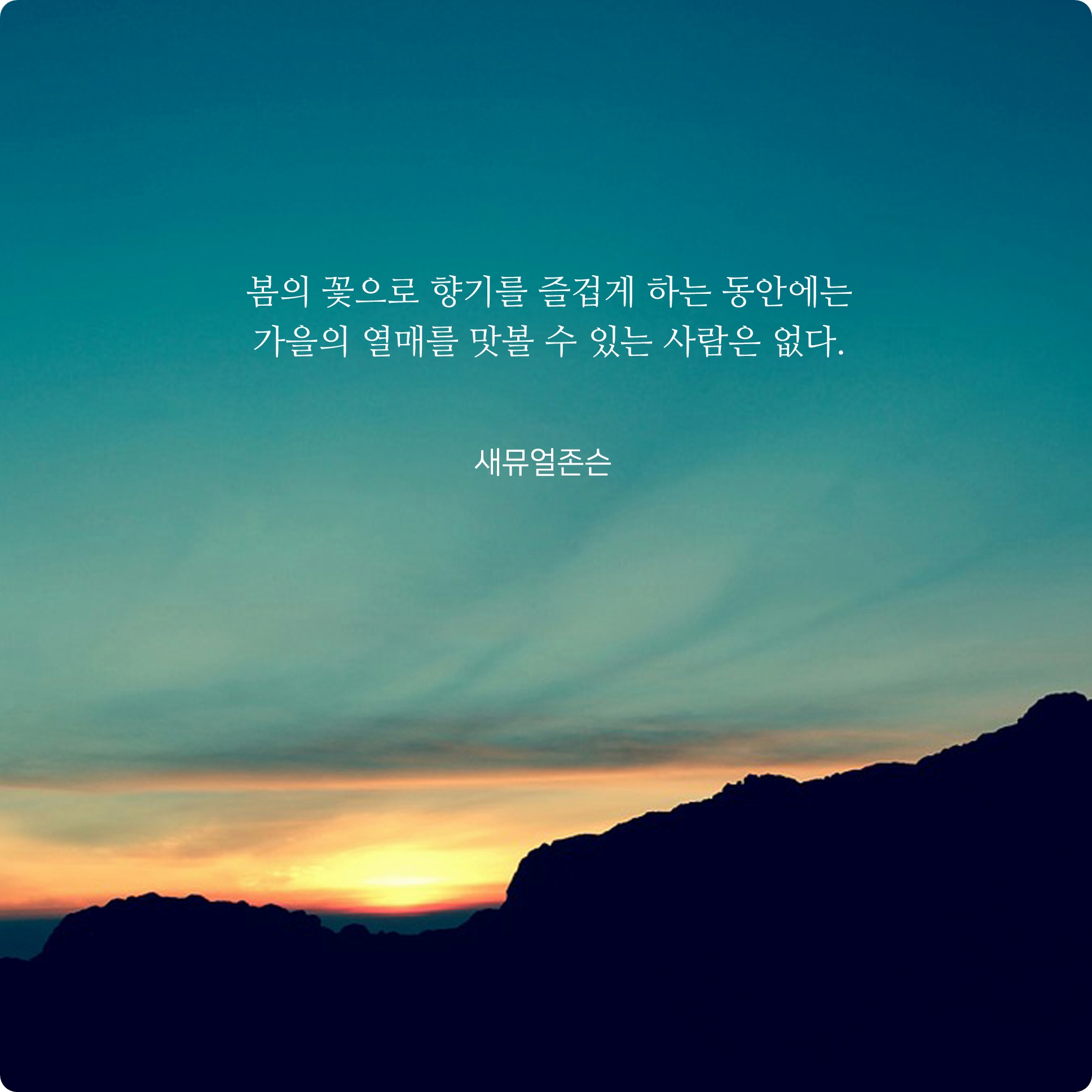 봄의 꽃으로 향기를 즐겁게 하는 동안에는 가을의 열매를 맛볼 수 있는 사람은 없다.