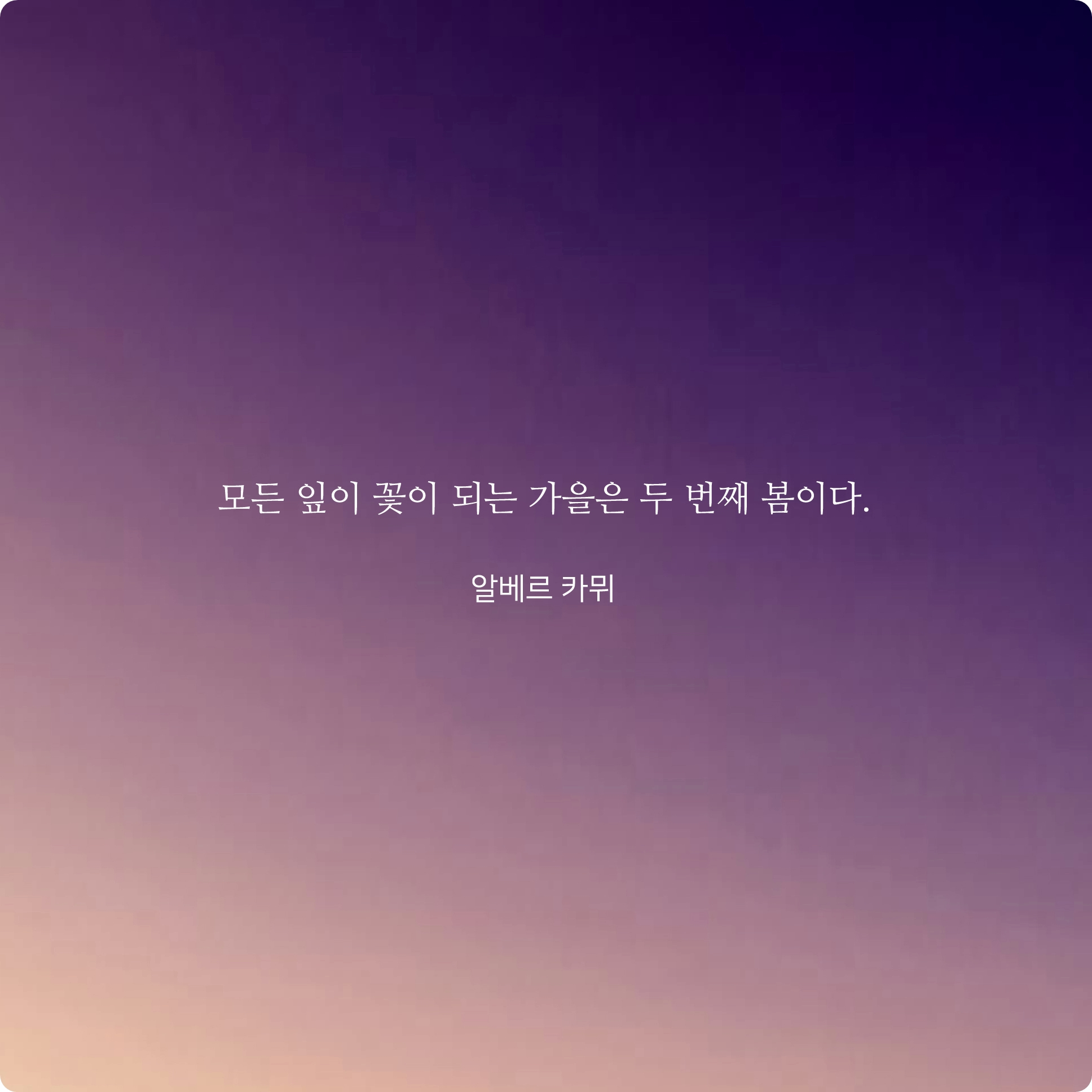 문구들은 모두 가을명언 모음으로 모아봤습니다. 지금이 10월 막바지이기는 하지만 내년 그리고 내후년의 10월달에도 꾸준한 감상거리가 될 수 있는 글들이 되었으면 하네요. 시간은 너무나 빠르게 흘러가지만 이런 가을의 감성을 조금이나마 더 마음속으로 느끼고 만끽하며 서서히 보내는 것이 빠르게 흘러가는 시간에 대한 아쉬움을 조금이나마 덜어줄 수 있지 않을까요?