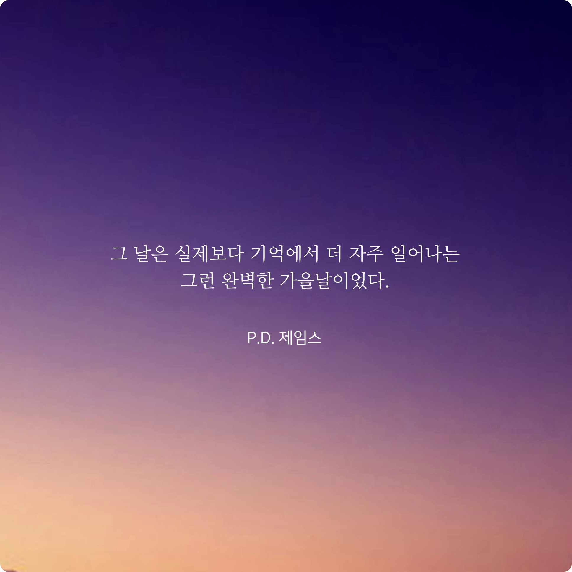 그 날은 실제보다 기억에서 더 자주 일어나는 그런 완벽한 가을날이었다.