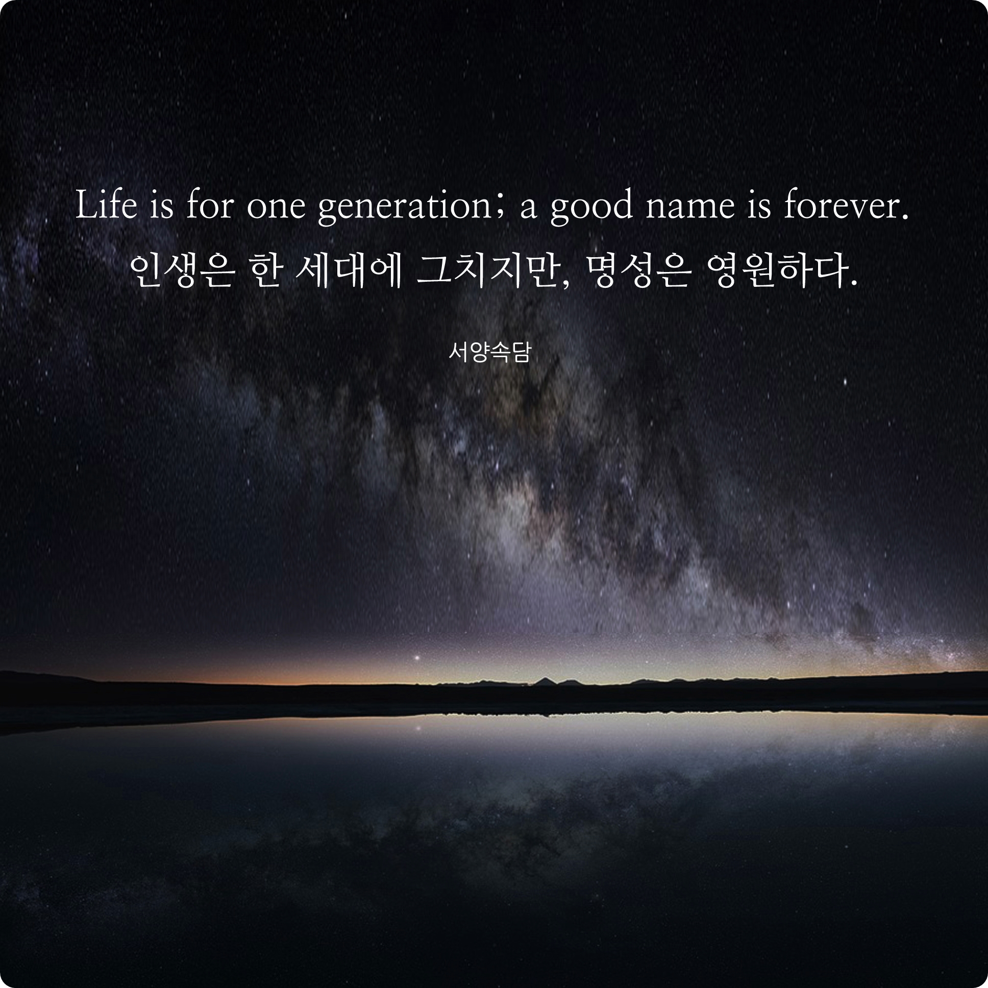 인생은 한 세대에 그치지만, 명성은 영원하다.