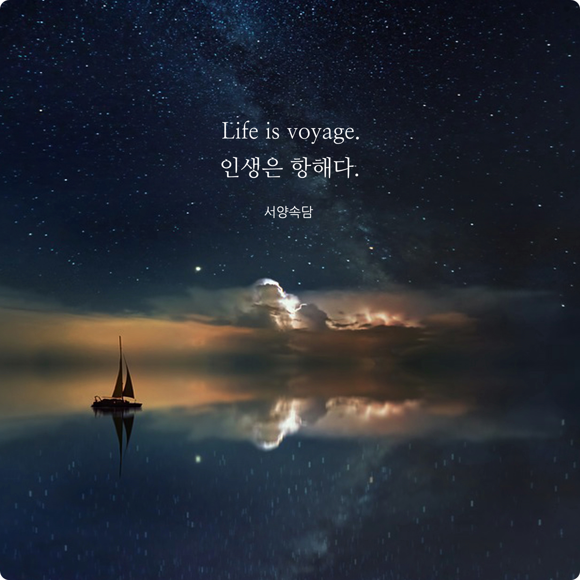 끊임없는 여정, 수십만번의 무수히 많은 우여곡절과 환희, 슬픔, 지속적으로 만끽하게 될 즐거움과 행복. 모든 과정들은 하나의 끝임없는 항해와도 같아요. 무수히 많은 모험과 시행착오들로 하여금 우리가 제대로된 인생을 살고 있다고 진심으로 느끼고 깨닫게 되는 것 같습니다.