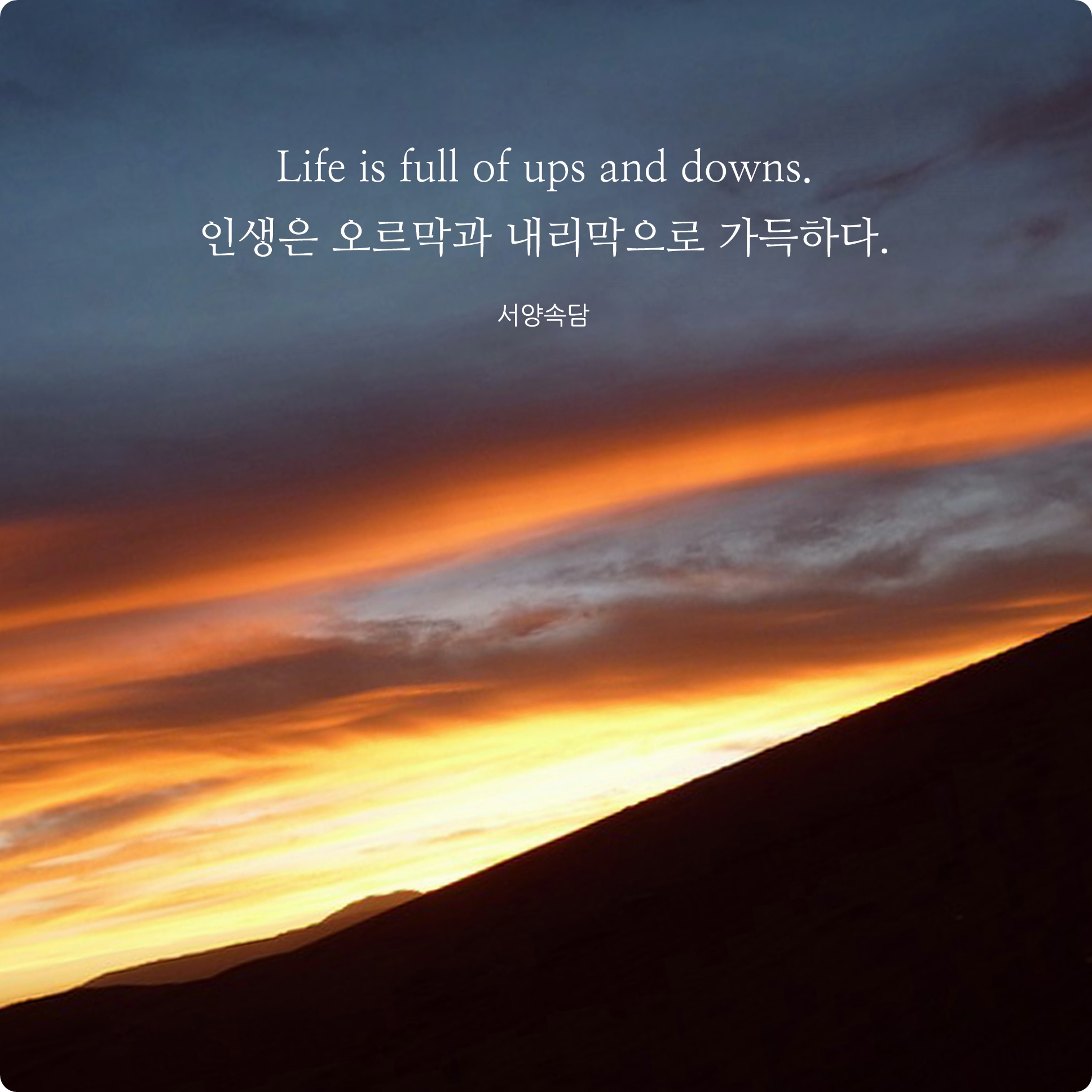 잘 안풀릴때가 있으면 잘 풀릴때가 있고 행복한 순간이 있다면 슬픈 순간도 있습니다. 인생에는 오르막이 있고 내리막이 있습니다. 늘 끊임없이 말이죠.
