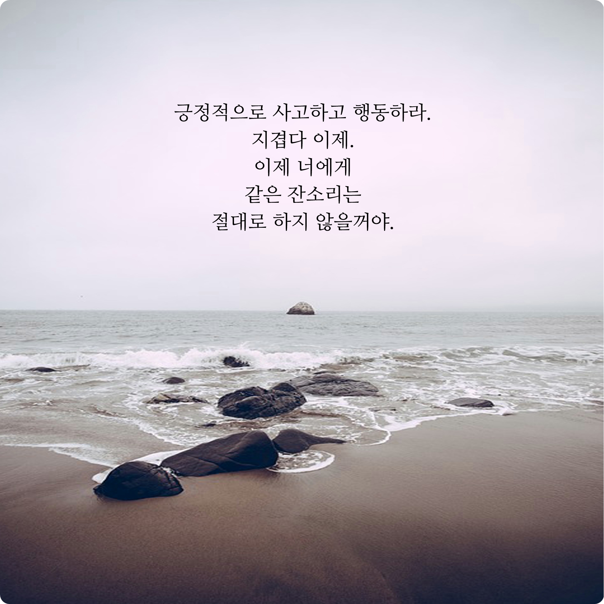 긍정적으로 사고하고 행동하라. 지겹다 이제. 이제 너에게 같은 잔소리는 절대로 하지 않을꺼야.