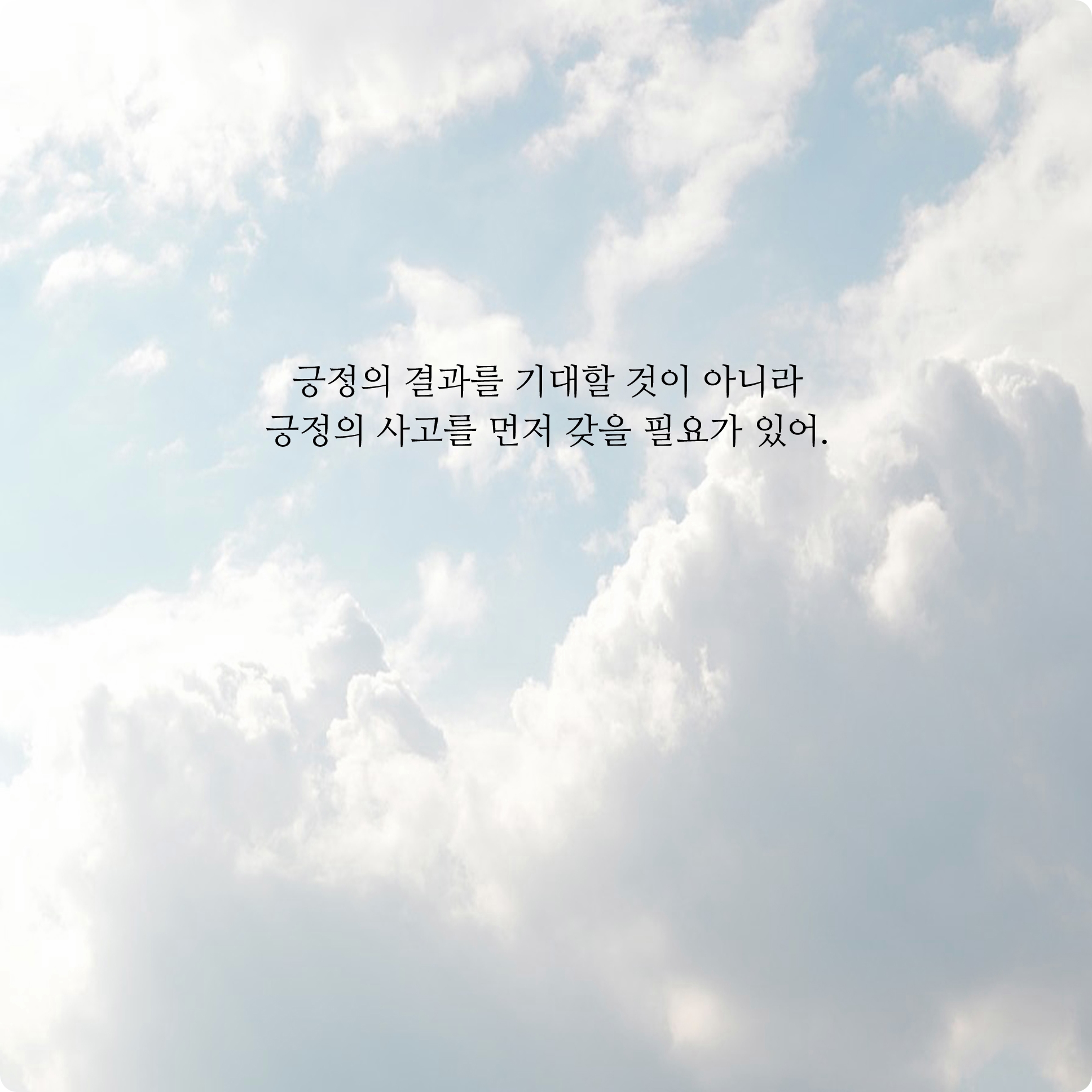 긍정의 결과를 기대할 것이 아니라 긍정의 사고를 먼저 갖을 필요가 있어.