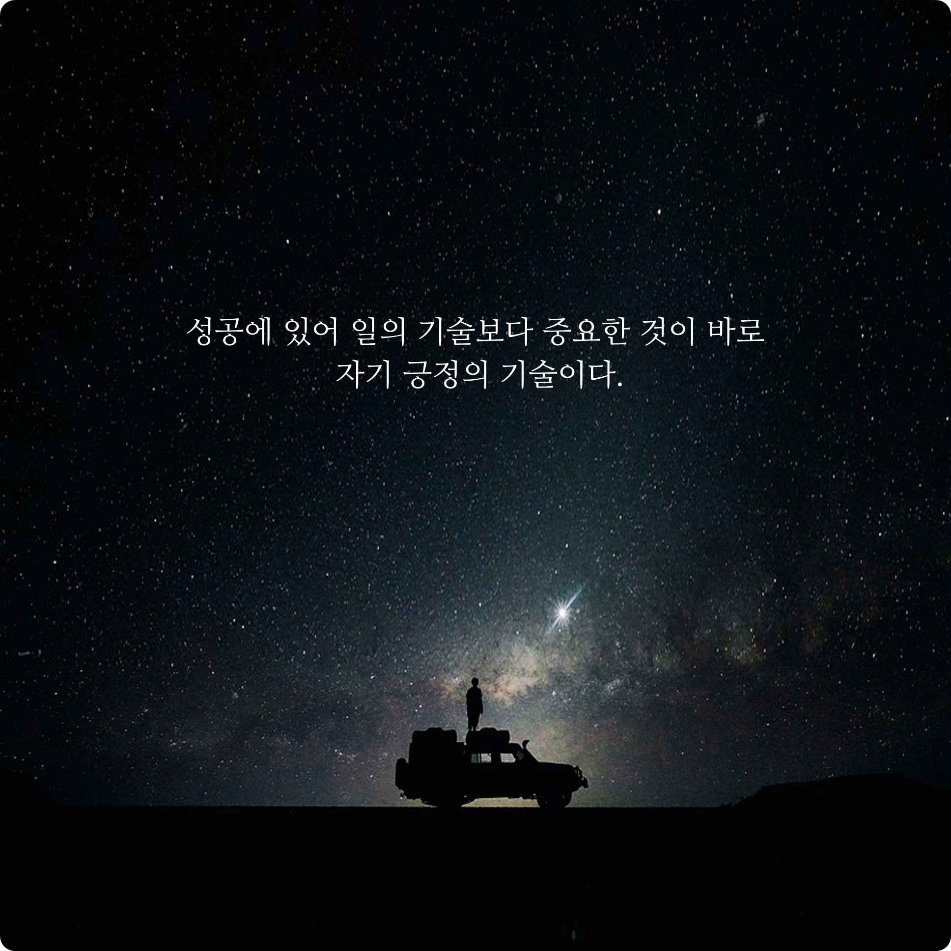성공에 있어 일의 기술보다 중요한 것이 바로 자기 긍정의 기술이다.