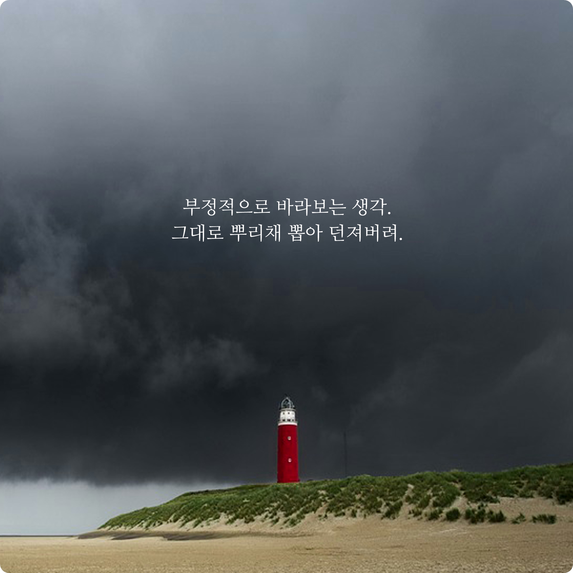 부정적으로 바라보는 생각. 그대로 뿌리채 뽑아 던져버려.