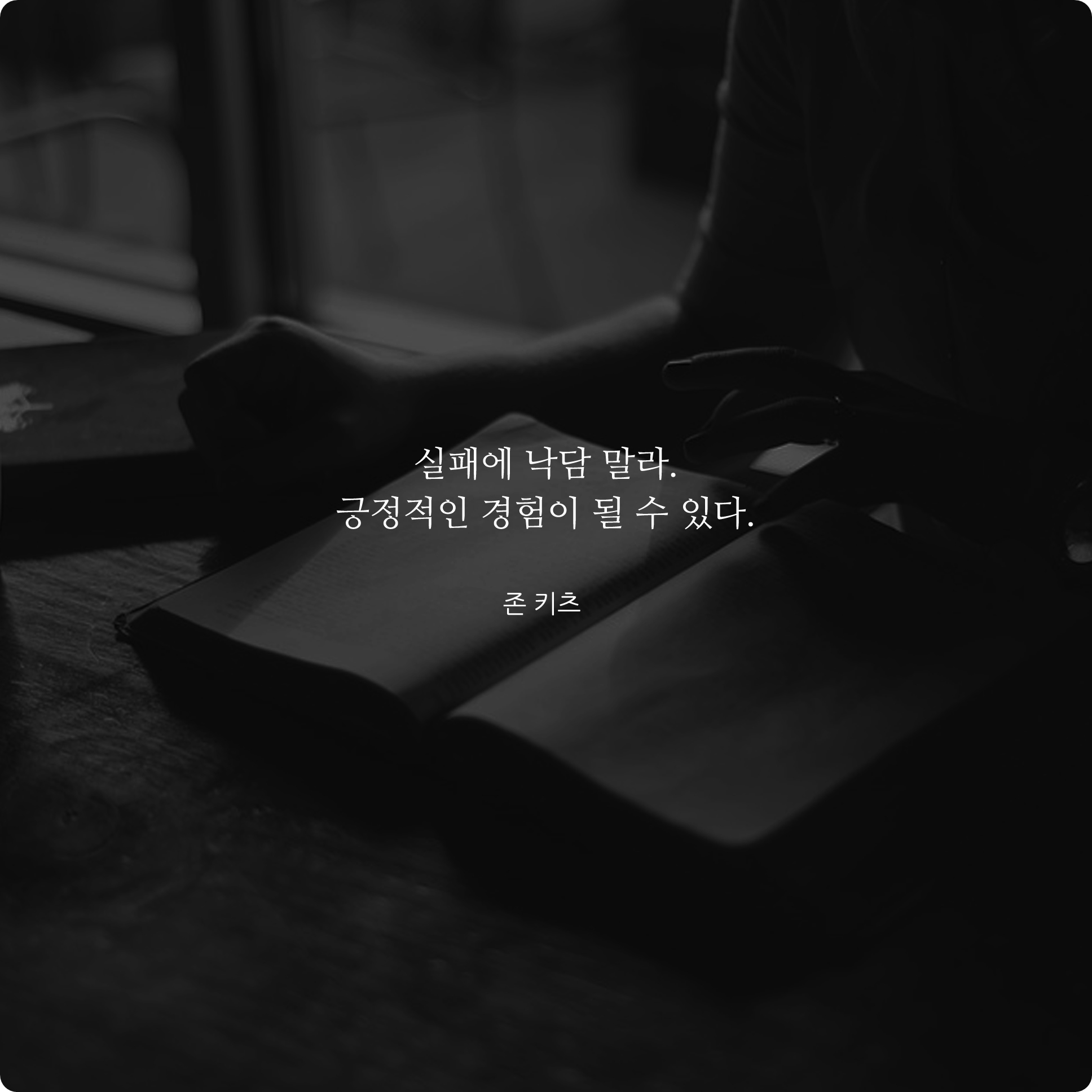 실패라는 경험도 우리가 어떻게 받아들이고 어떻게 대처하느냐에 따라서 다르게 다가갈 수 있는데요. 반드시 겪지 말았어야할 경험이 될지 아니면 이 실패로 하여금 앞으로의 좀 더 나은 판단을 할 수 있게 도움이 될 수 있는지 말이죠. 이런 실패의 경험은 우리에게는 강력한 메세지를 전합니다.