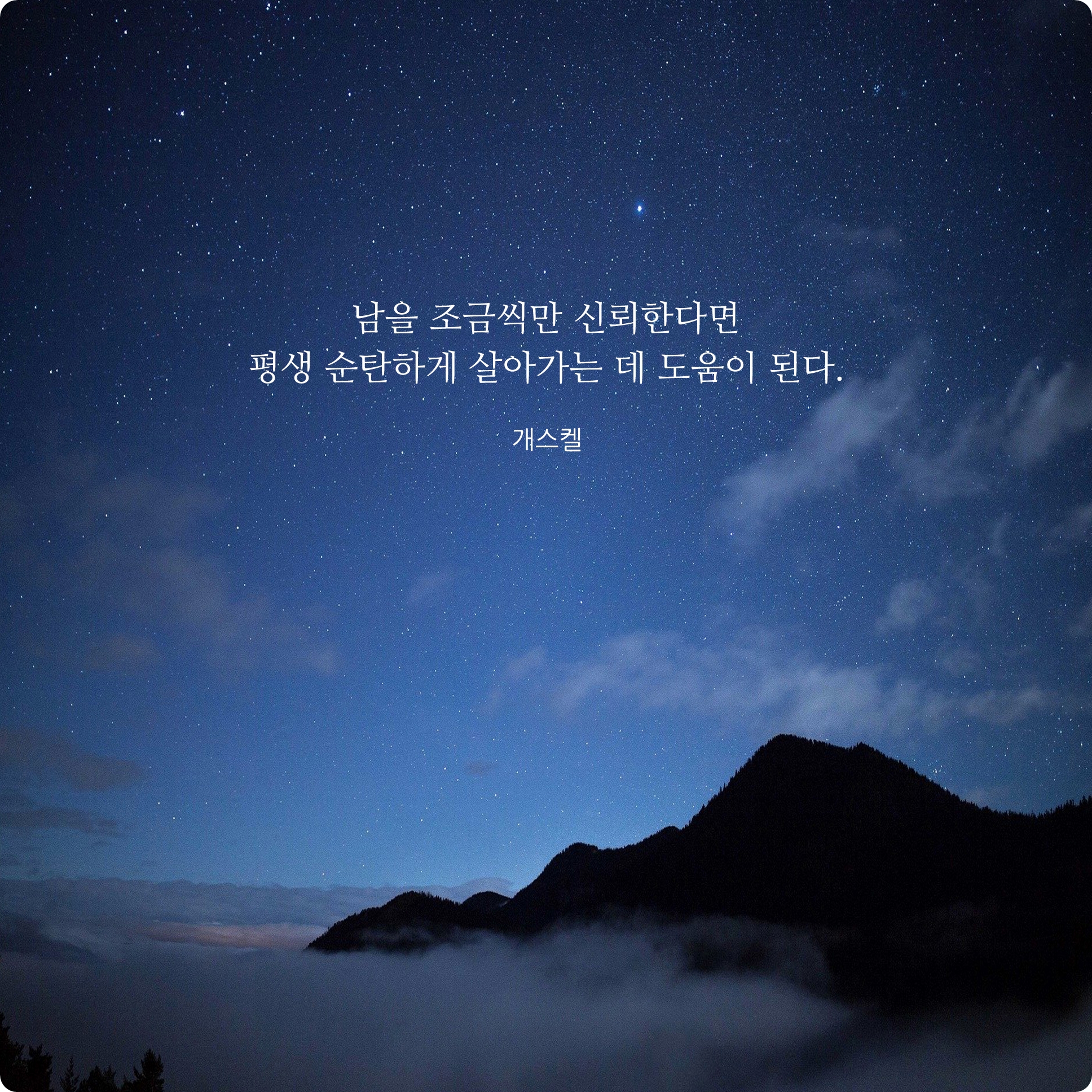 남을 조금씩만 신뢰한다면 평생 순탄하게 살아가는데 도움이 된다.