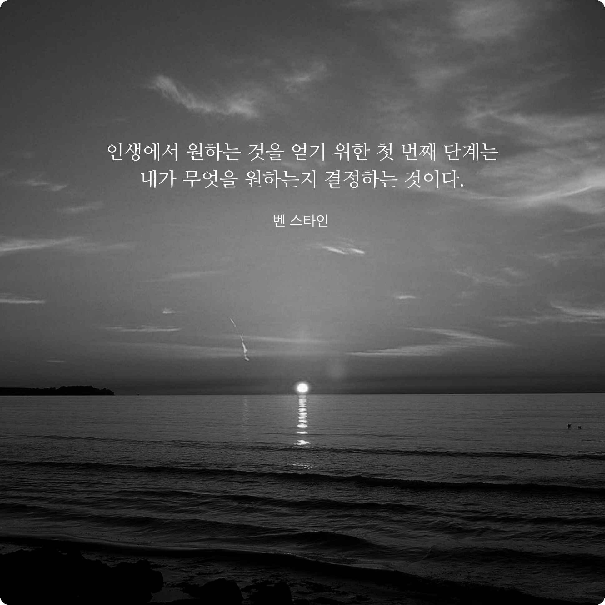 인생에서 원하는 것을 얻기 위한 첫 번째 단게는 내가 무엇을 원하는지 결정하는 것이다.