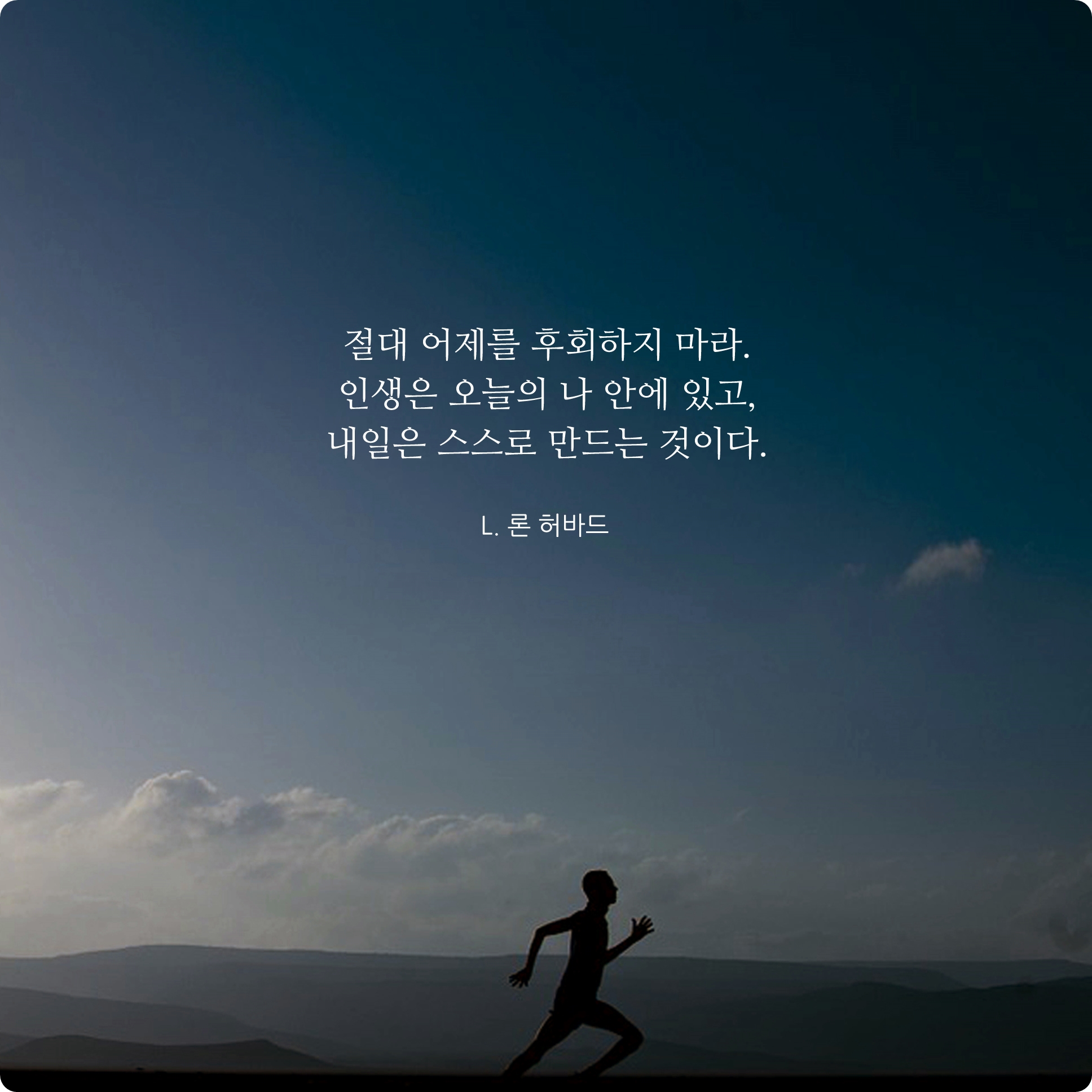 절대 어제를 후회하지 마라. 인생은 오늘의 나 안에 있고, 내일은 스스로 만드는 것이다.